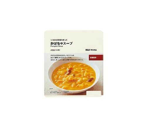 ものすっごい具沢山のかぼちゃスープ。どろっとしていて、食べ応え十分。豆や玉ねぎなどの食感も楽しめます。最長2年間保存できるので、備蓄用にも◎。