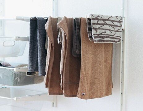 小物は収納場所の上に干すと、たたんで運ぶ手間が減る