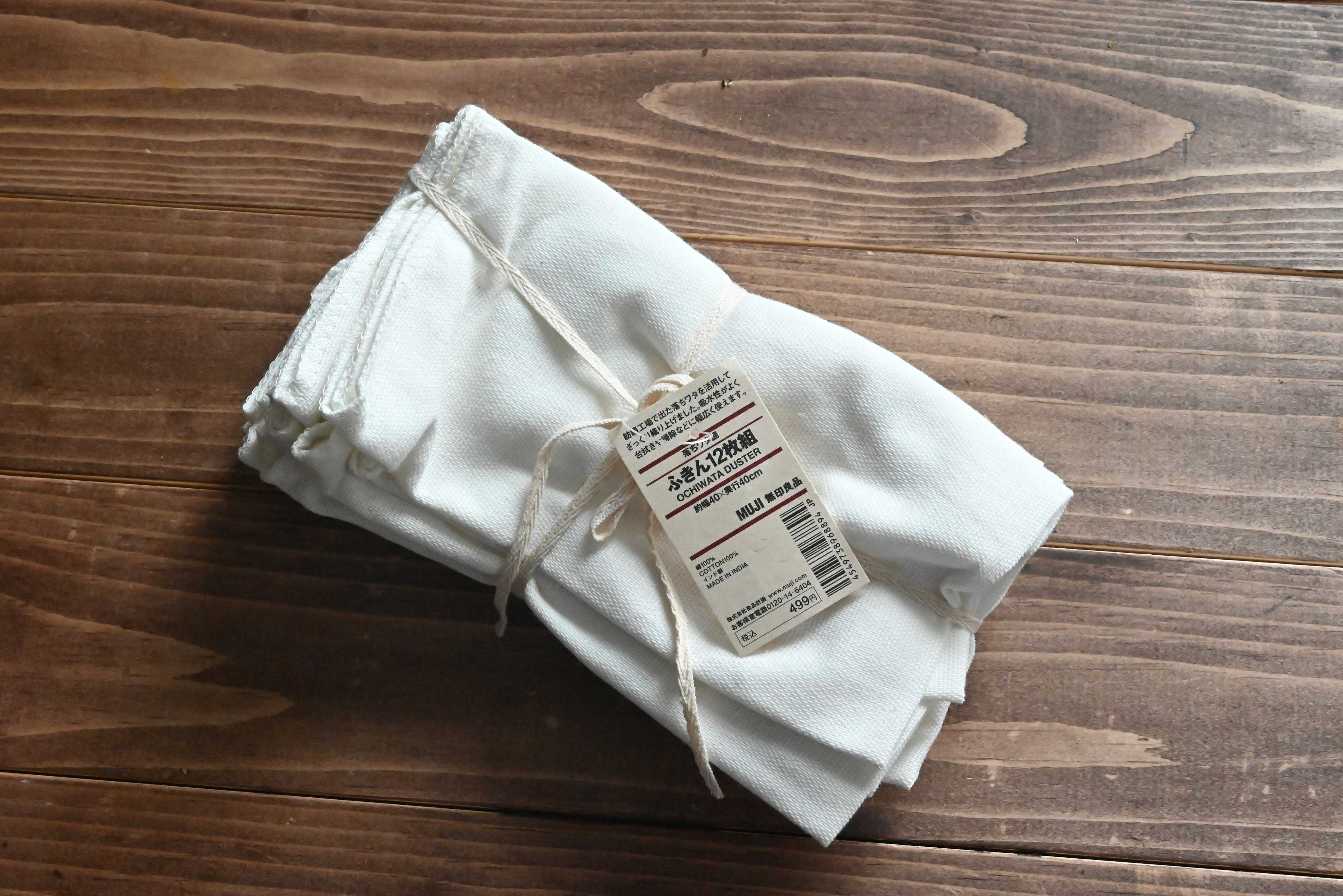 紡績工場で出た落ちワタを活用してざっくり織り上げたふきんで、吸水性がよいので台拭きや食材の水気をふくのに重宝しますよ。枚数が多いので、気軽に使ってすぐに洗濯できるのもうれしいポイントです。