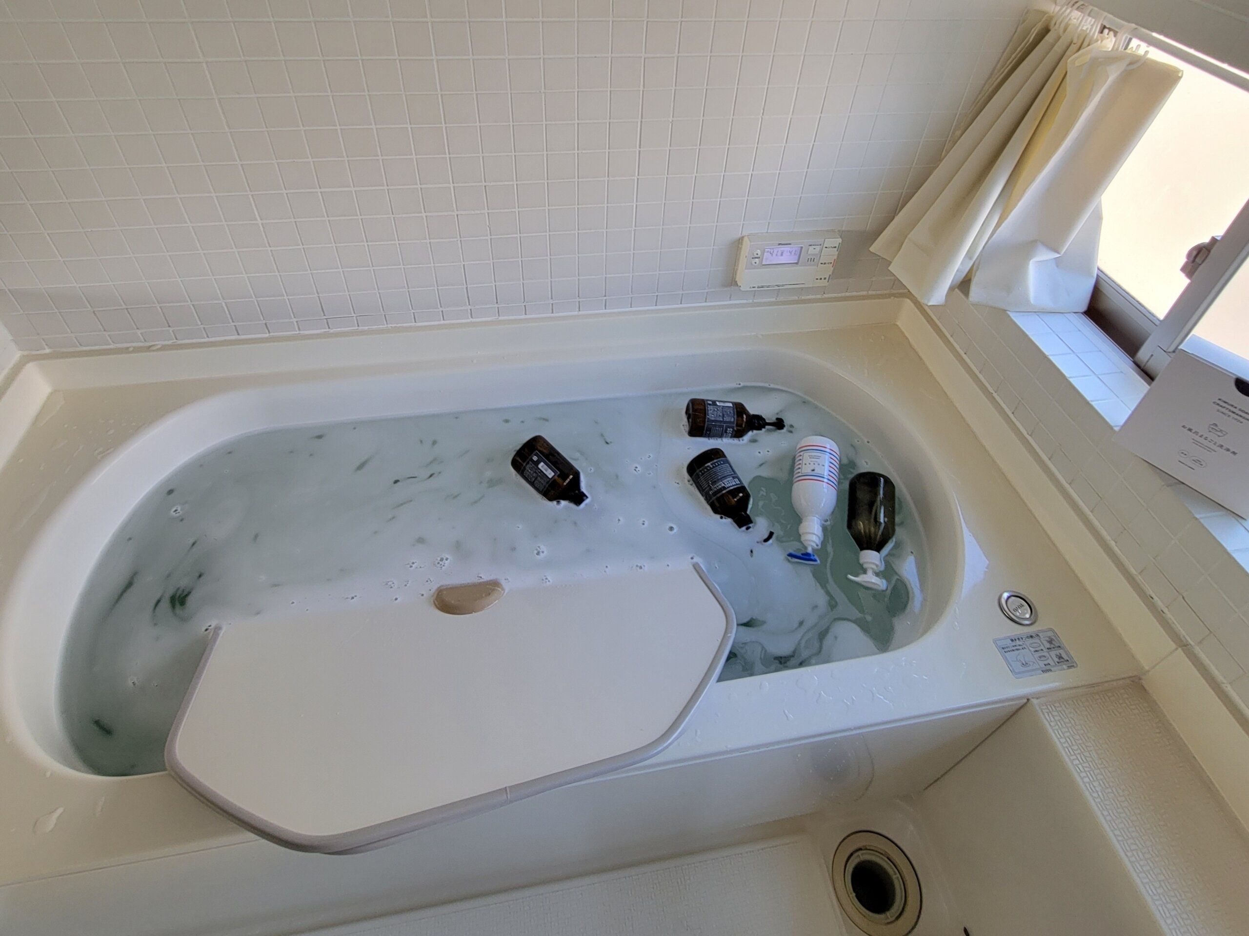 私が使っている木村石鹸のお風呂丸ごと洗浄剤は、風呂釜の掃除もしつつ、浴室備品を一緒に浸けておけば浴槽ごとキレイになるものなんです。