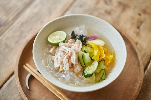 水キムチとはその名のとおり、お水で漬けた浅漬けのようなさっぱりとしたキムチのことです。お米のとぎ汁やりんごに含まれる糖のおかげで乳酸菌が育つので、胃腸の調子を整えてくれます。漬け汁ごとつかった冷麺は、さっぱりとした味付けで、あらかじめ水キムチを用意しておけば、いつでも手軽につくれるのでオススメです。