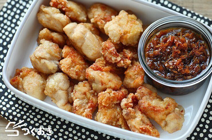 食卓の人気者の唐揚げに、さっぱりおいしい黒酢ダレがマッチしてごはんの進む一品です。