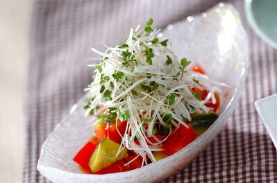 クラゲのコリコリとした食感がおいしい、ヘルシーな中華風サラダ。材料を切ってあえるだけなので、何かものたりないというときにささっと手早くつくれます。好みでラー油を加えても◎。