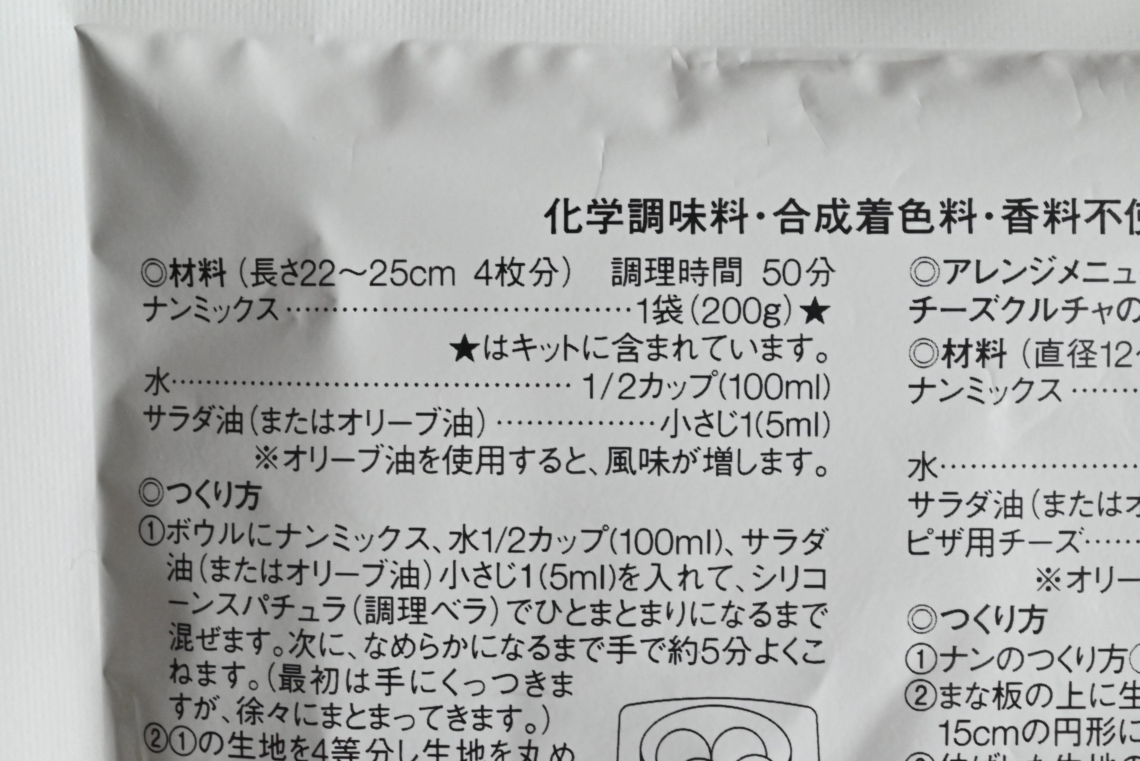 無印良品ではすでに出来上がっているナンが販売されていますが、そちらは2枚入り。こちらのキットでは同じ値段で4枚作れますよ。