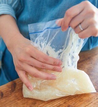 密閉式保存袋で作ったゼリーをクラッシュして肉だねにIN!