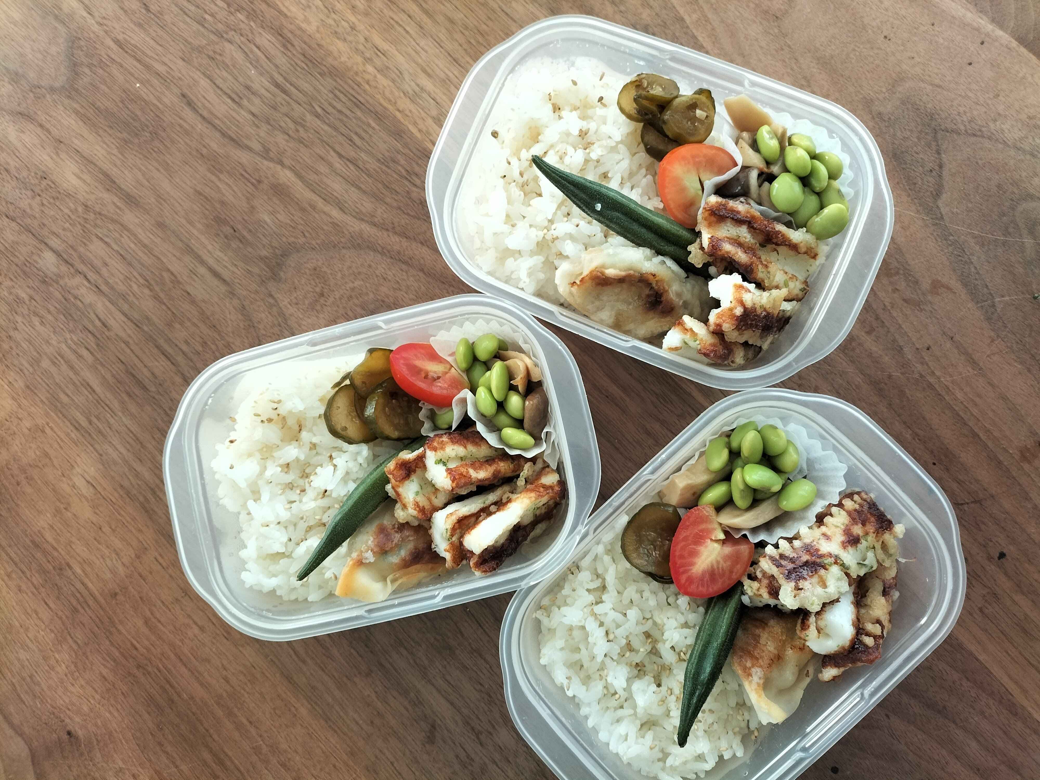 お弁当はその日の朝に作るものと思っていたのですが、夜のおかずを取りおくついでにお弁当に詰めてみたところ、びっくりするほど、朝の負担が減りました。