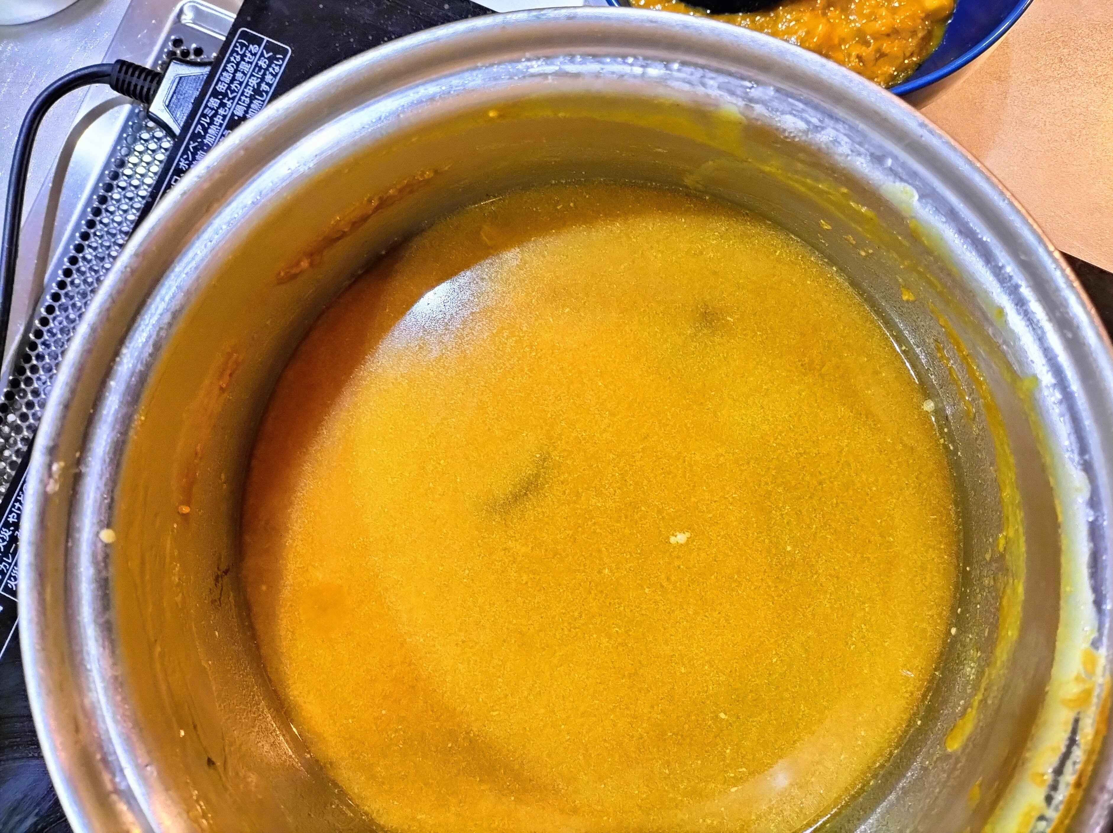 ・鍋に少しカレーを残します(スープの量によって調節してください)