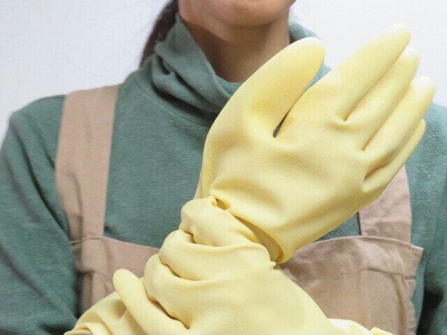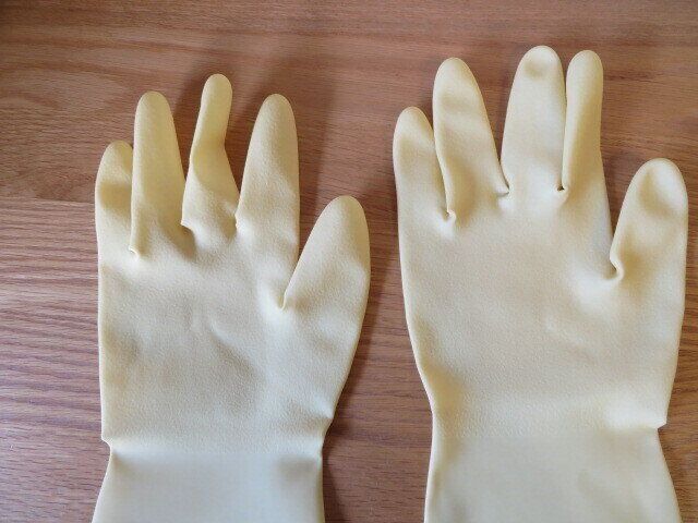 このゴム手袋は長めで手首がすっぽり隠れるため、その心配はほぼありません。