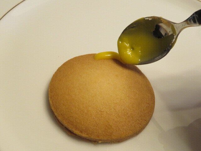 複数の色をのせて、クッキーの上で混ぜてみても抽象画のようで面白いですよ。