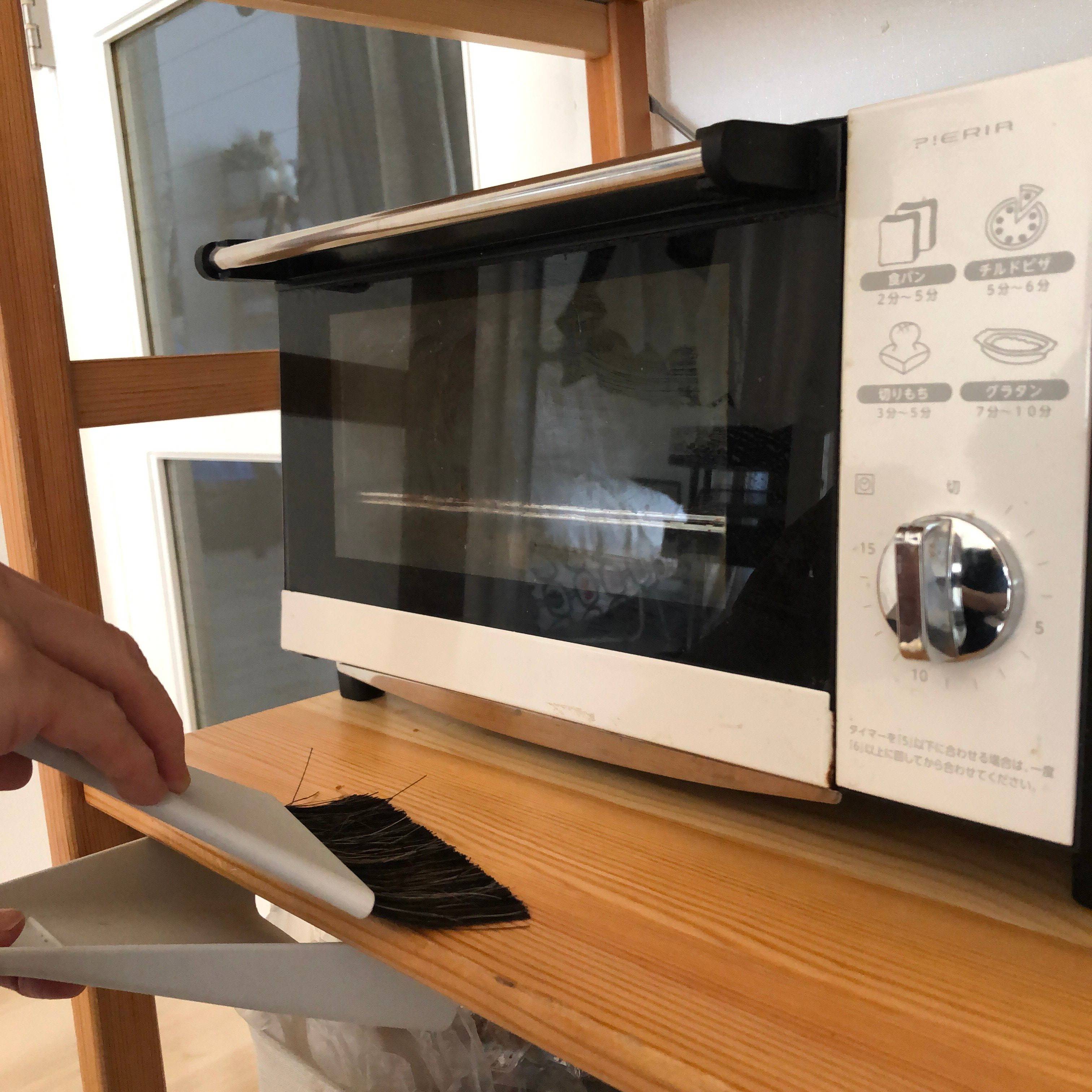パンを焼いた際に落ちたカスや、スティックコーヒーの粉などをササっと掃除しています。