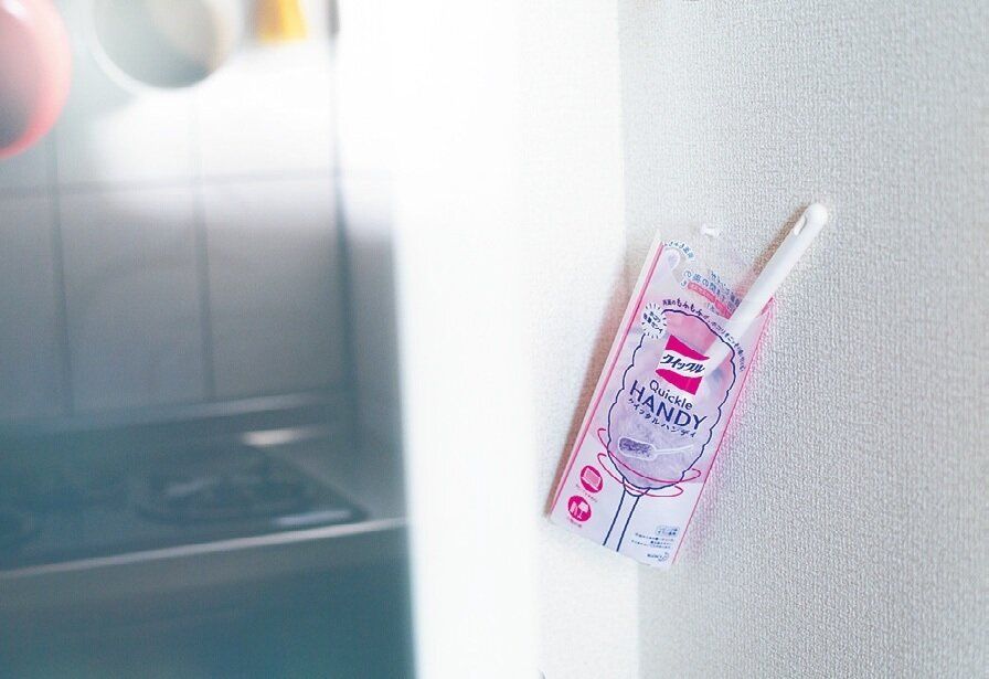 「オムツや掃除グッズは元々ぴったりのパッケージに入っているから、わざわざ別の収納グッズに移し替えたりしません。そのままでOK」。パッケージが目立ちすぎるなら、死角に配置して隠せばよし!