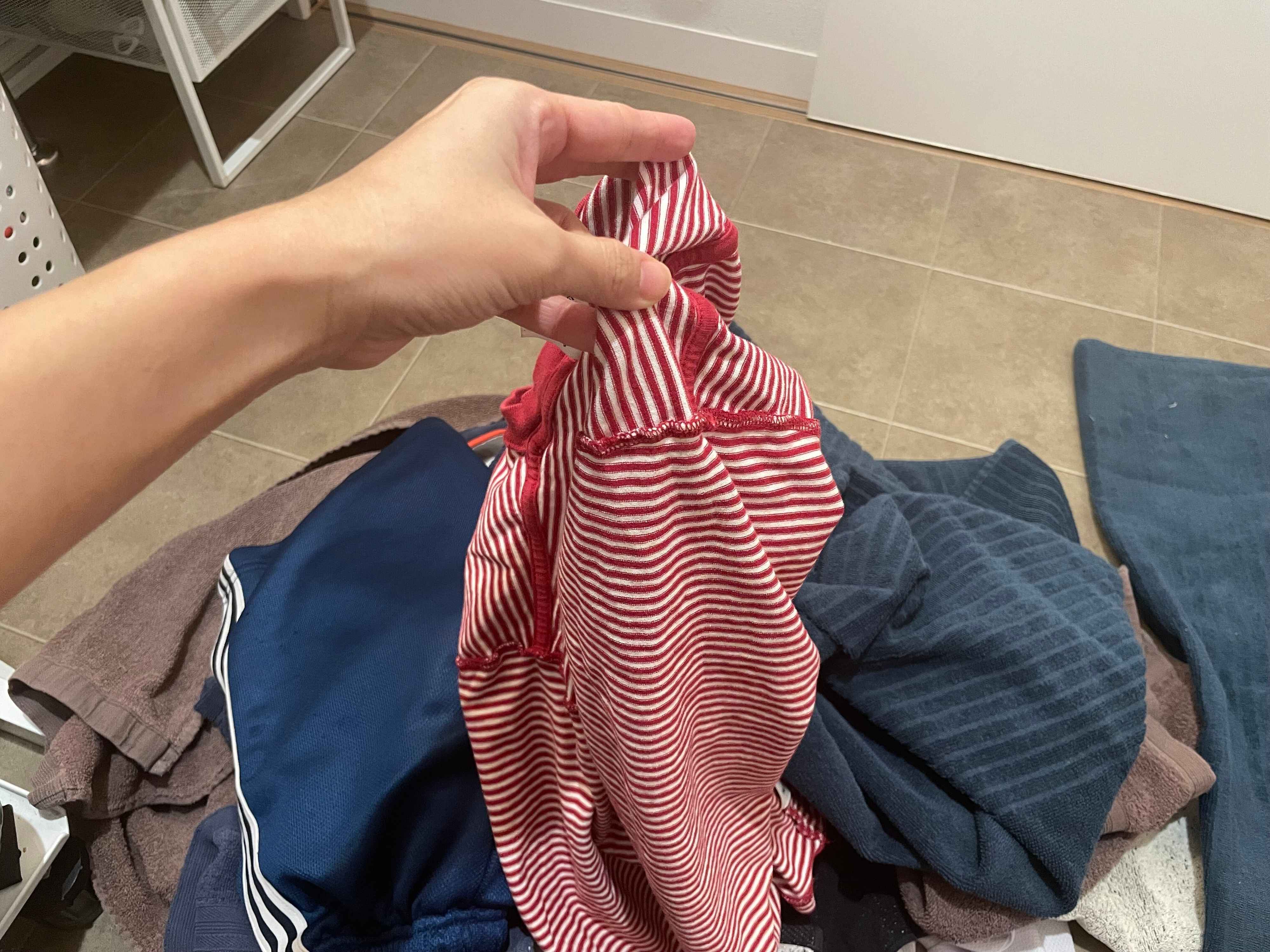これは子どもたちが脱いだズボンや夫がぬいだ靴下が該当します。洗濯工程を見直したときに、いっそのことやめてしまおうと思ったのが、この裏返った衣類をくるっとひっくり返してもどす動作。