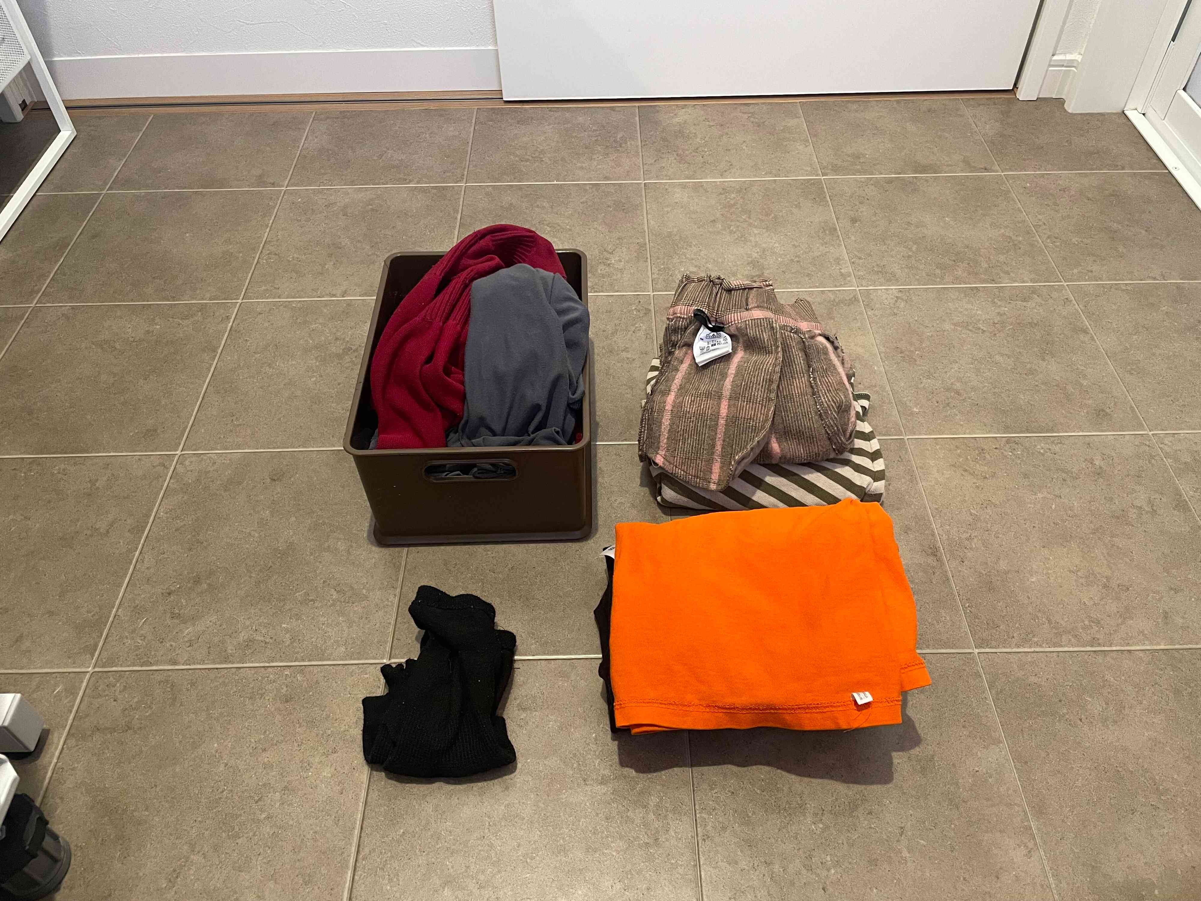 今では部屋中のすべての「タオル」に関してはいっさい畳んでいません。子どもたちの習い事用ユニフォームもしわにならない、テロンっとした素材。どちらもそれぞれの収納箱にぽいっとするだけなので、心の負担が一度に楽ちんになりました。