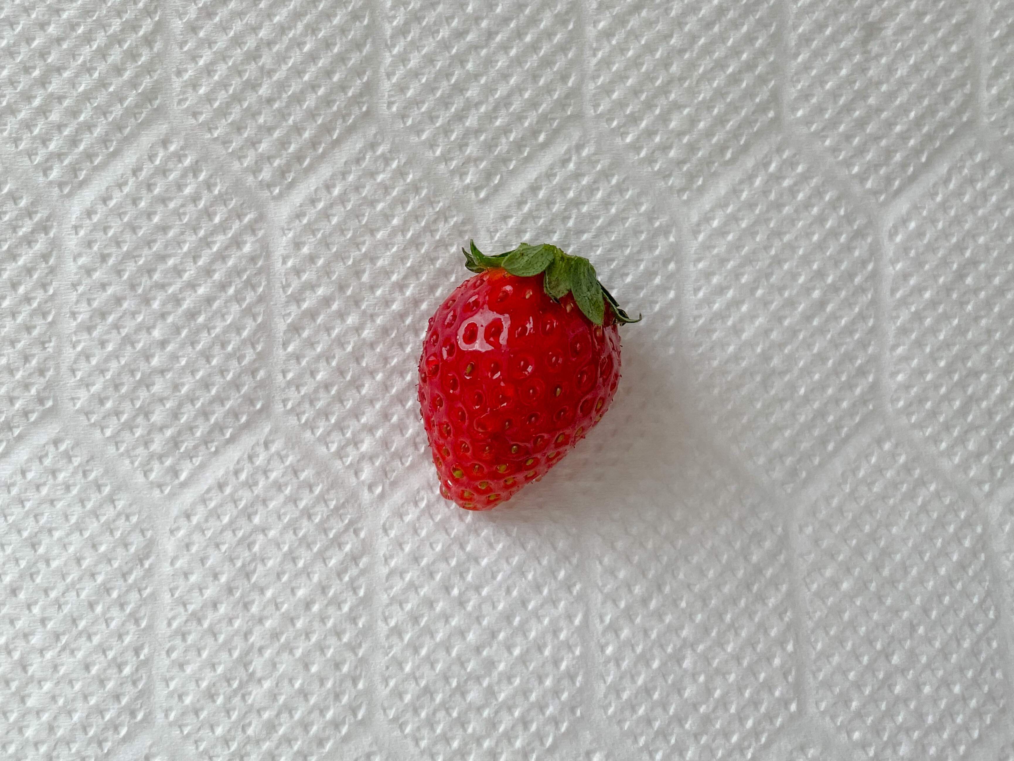 ふり洗いしたいちごの表面に残った水分が残ったままでは、食べたときに水っぽさを感じてしまいます。