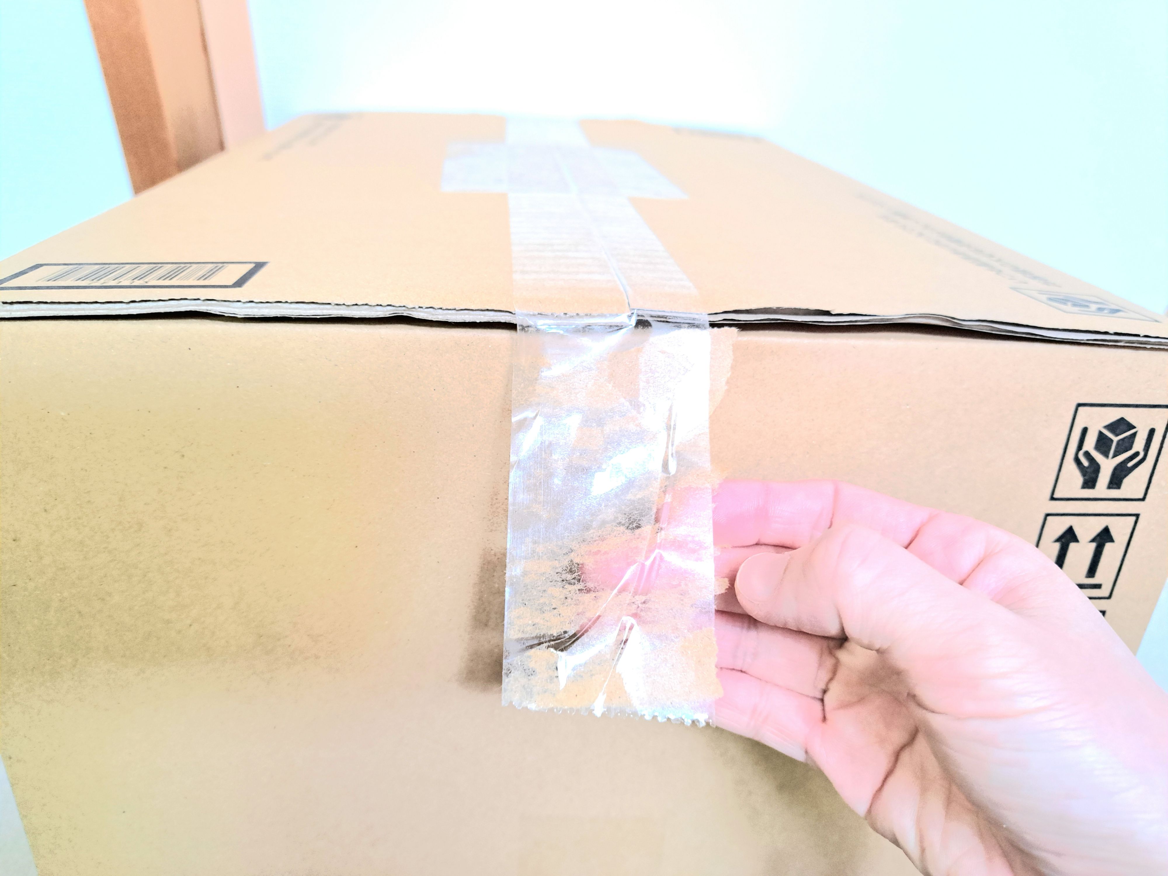 ビリッと簡単に剥がれるので、あとはビーッとテープを全部剥がしてしまえば、とても簡単に開梱することができます。