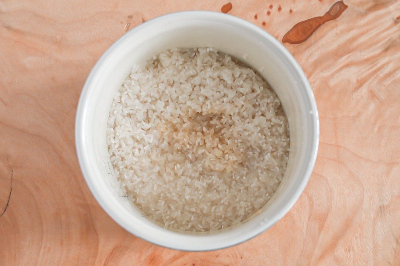 ※炊飯器の目盛りよりも水分量が多くなりますが、汁は捨てずにそのまま炊飯してください。