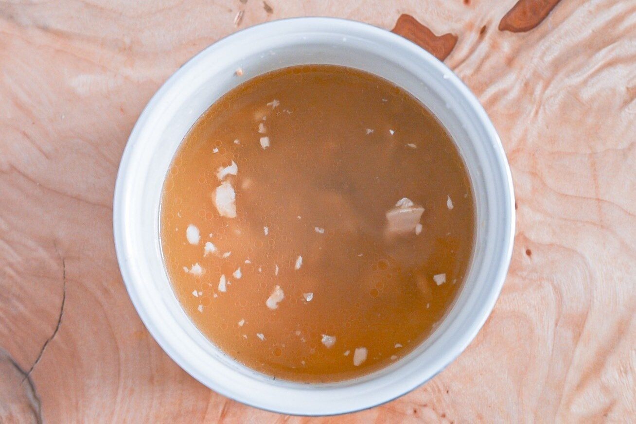 (2)小さいほうのパッケージに入った「だし」を入れます。