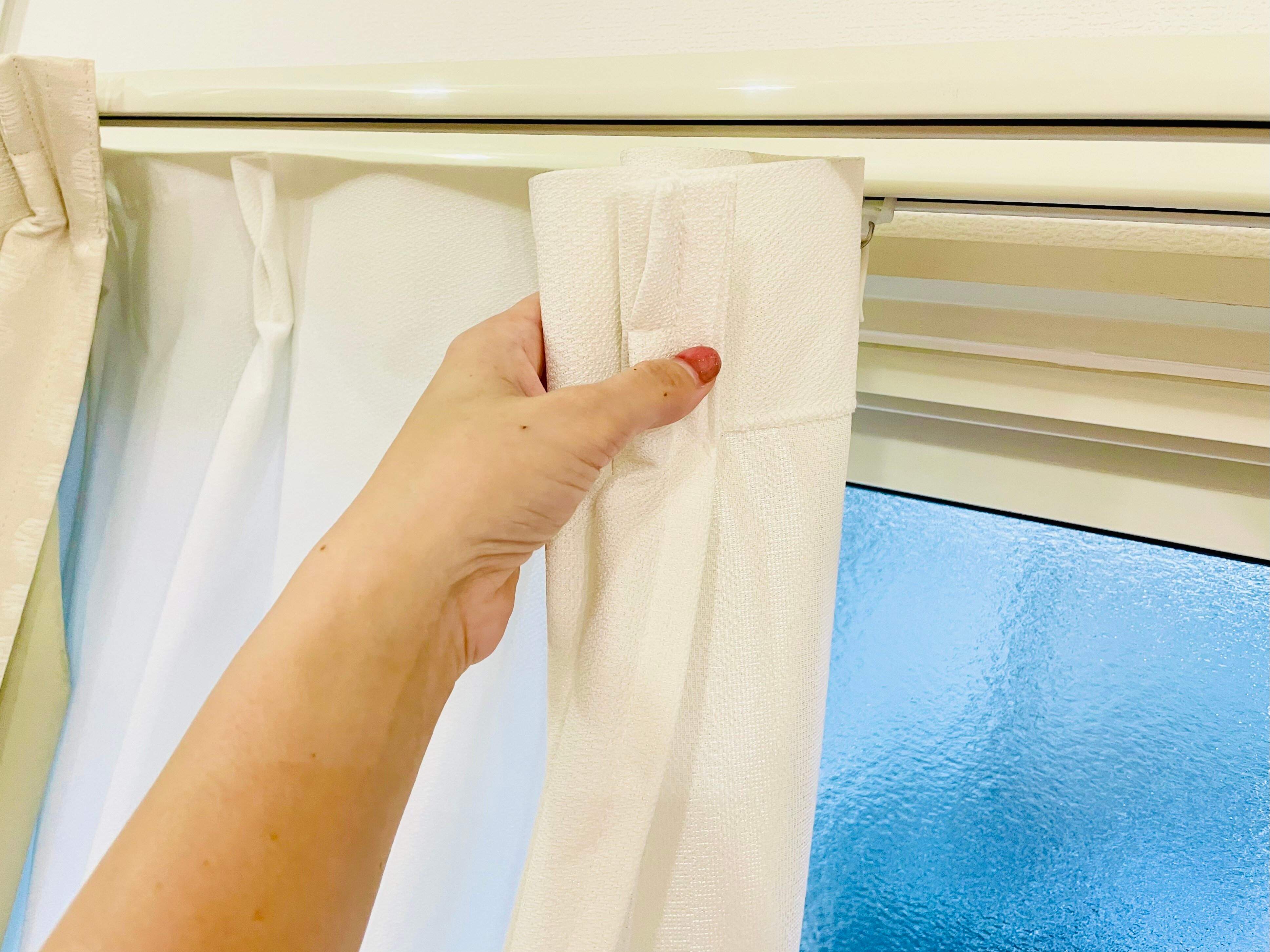 この時、カーテンのフックは付けたまま!