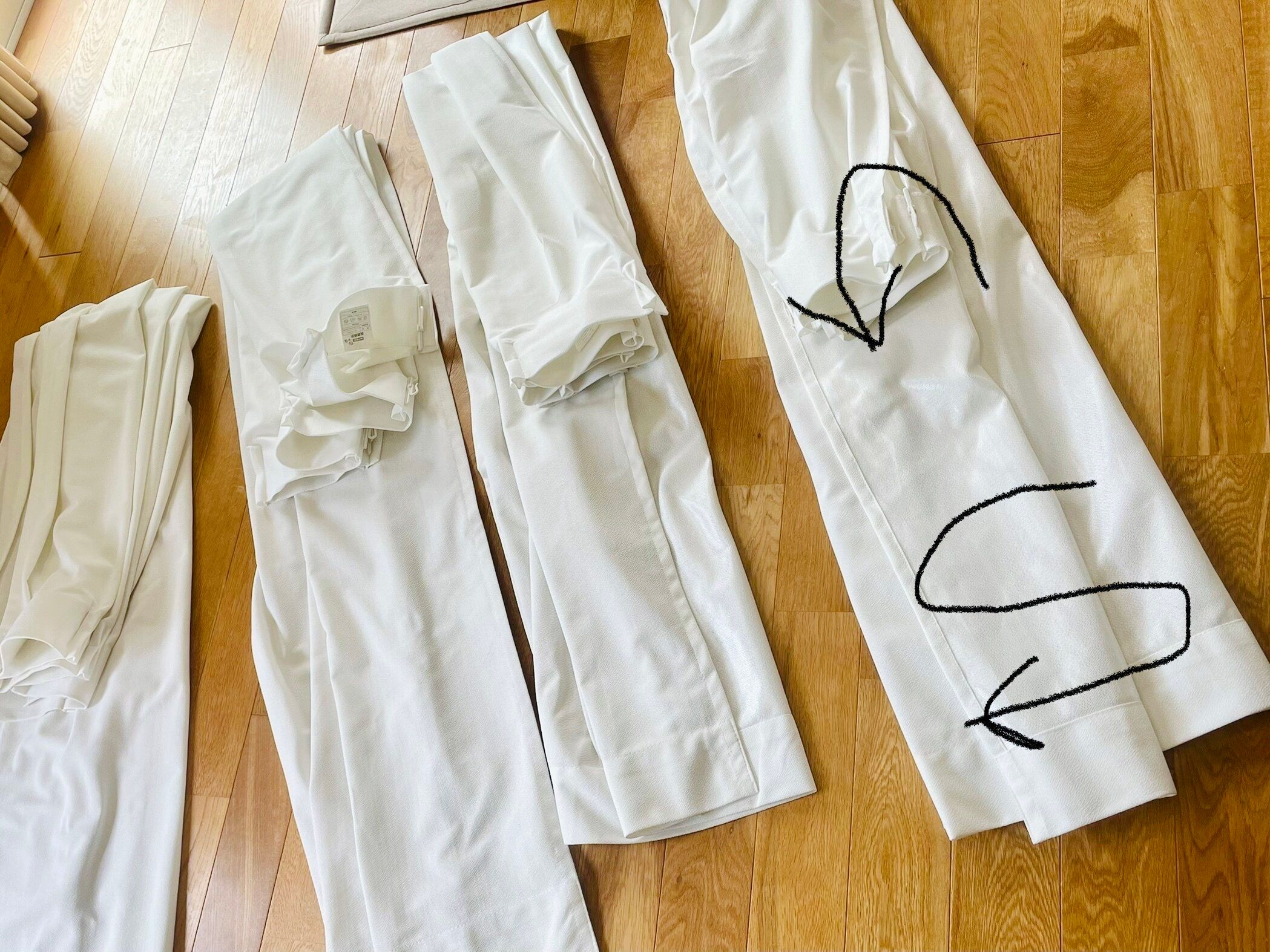 まずはカーテンをレールから外して、洗濯表示を確認します。この時に、どこのカーテンかメモしておくと、取り付けの際に迷わなくてすみますね。