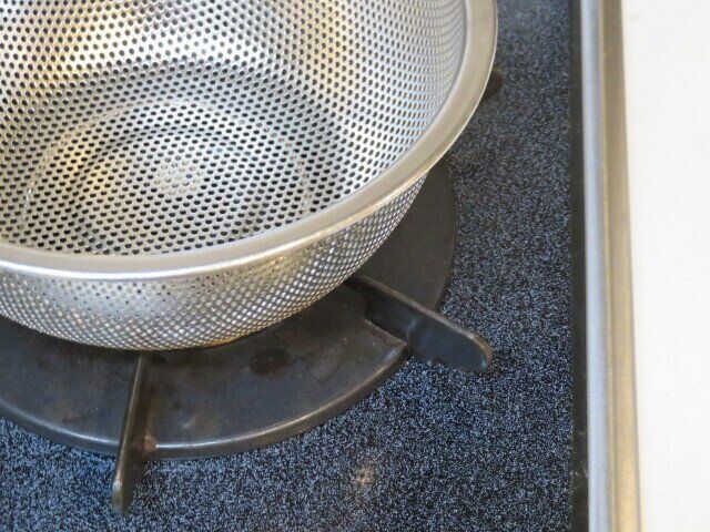 「ここでいいか」と使っていないコンロの五徳の上にボウルを仮置きしました。