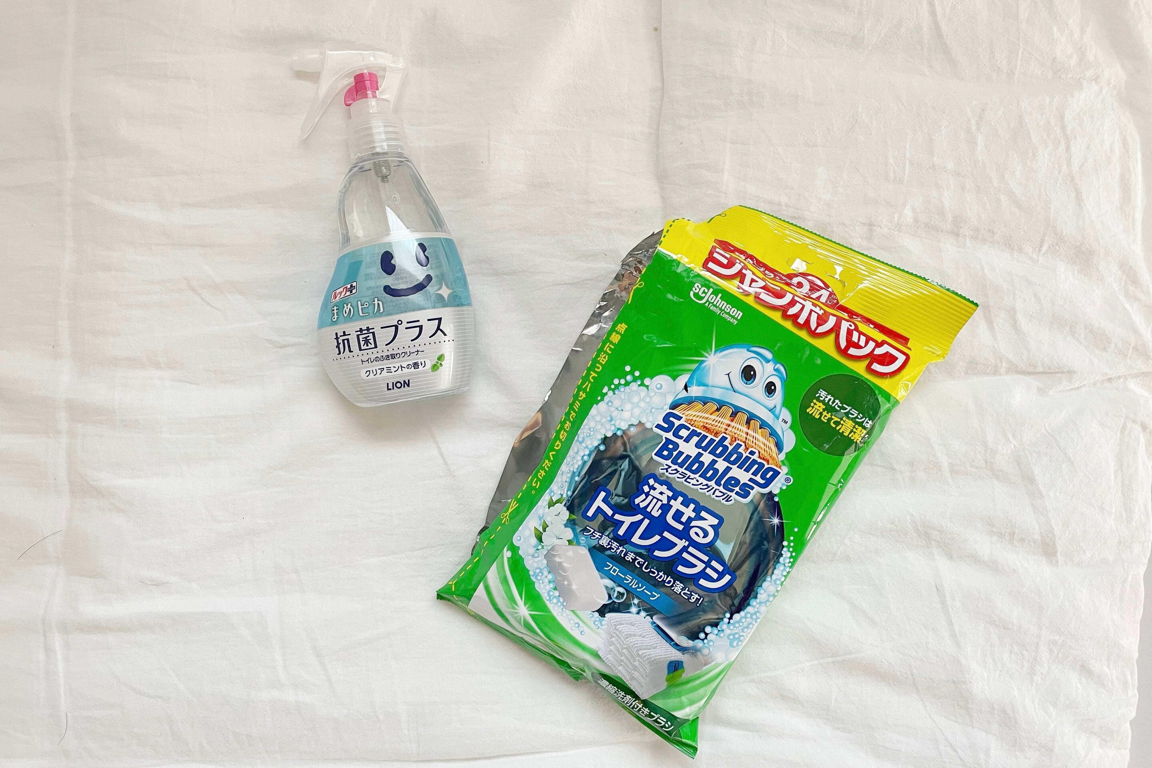 トイレ掃除を楽しくするために、掃除道具は一回で使い切れるもの、匂いが強すぎないものを選ぶようにしています。