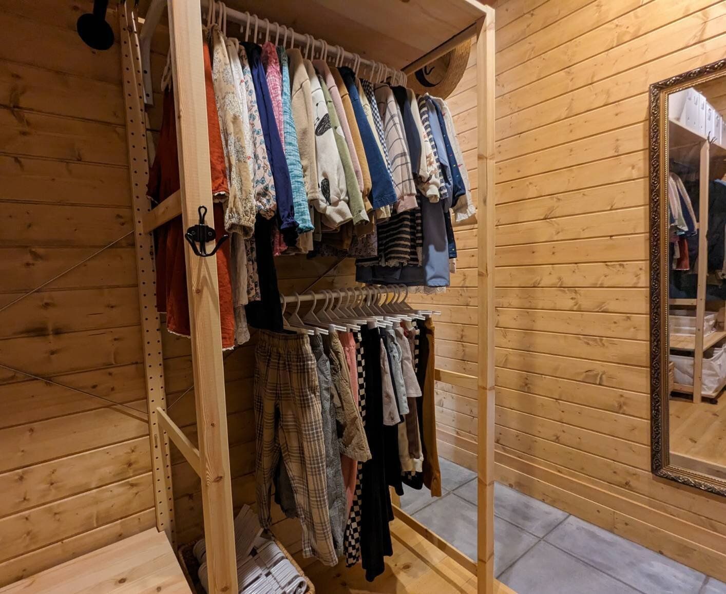 あれから5年。大人も子どもも服は全てハンガーにかける収納に、タオルはまるめてポイッ、肌着やパジャマなどは各自のバスケットに投げ込むだけに!たたむ作業を極限までなくしたことで、家事時間を大幅短縮できています。