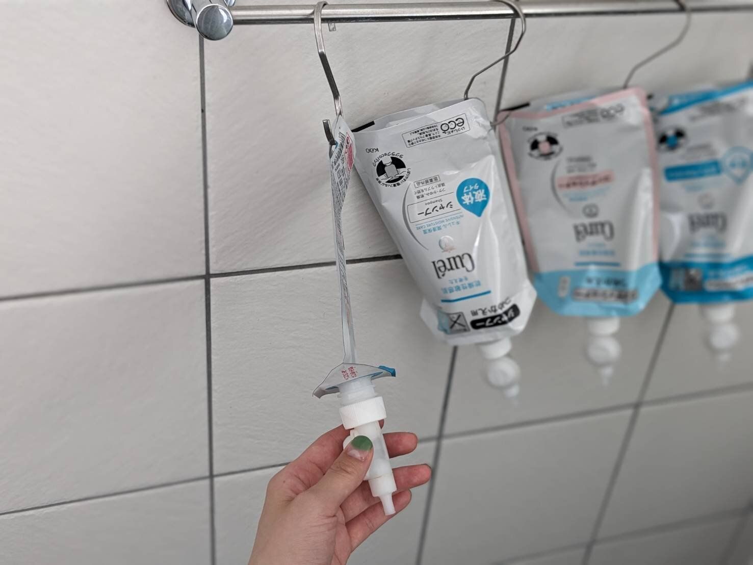 使用上問題のない液体調味料はそのまま、トイレタリーは詰め替え用をそのまま吊るして最後の一滴まで使い切る。見栄えだけのためにやっていた詰め替えをやめたことで、心が一気に軽くなりました。