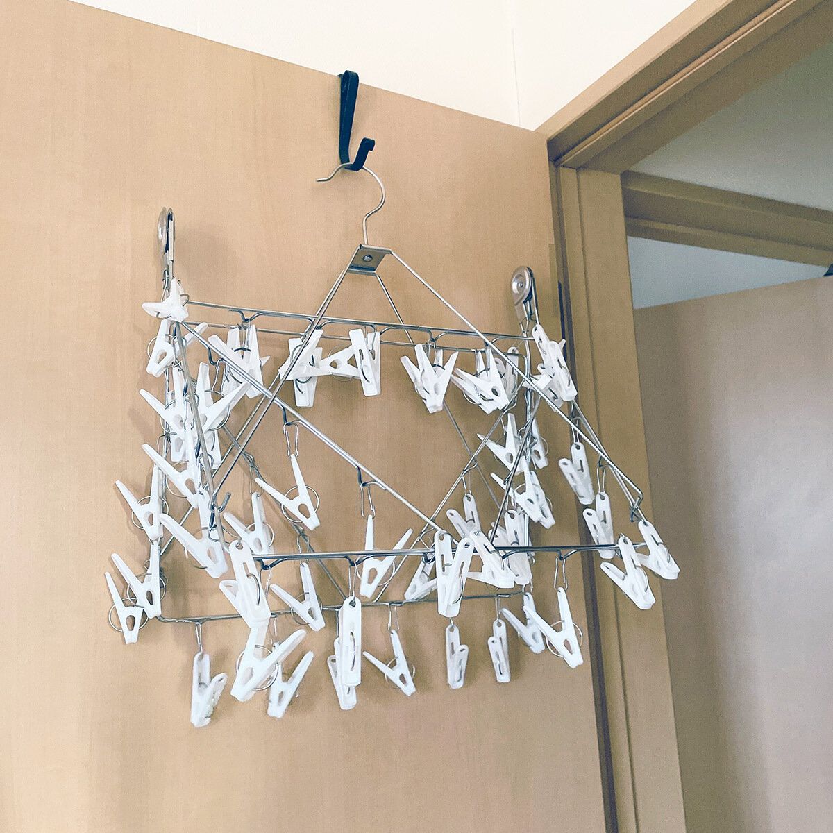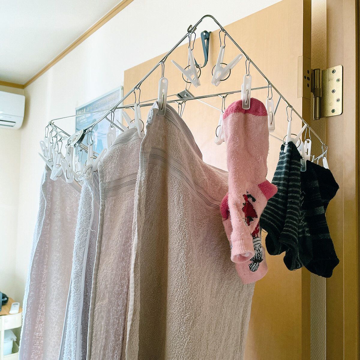 朝洗濯して干して、夜帰宅後に取り込むという流れが多いのですが、夜まで外に干しっぱなしだとどうしても少し湿っている気がして、帰宅後はそのまま部屋干しに切り替えます。
