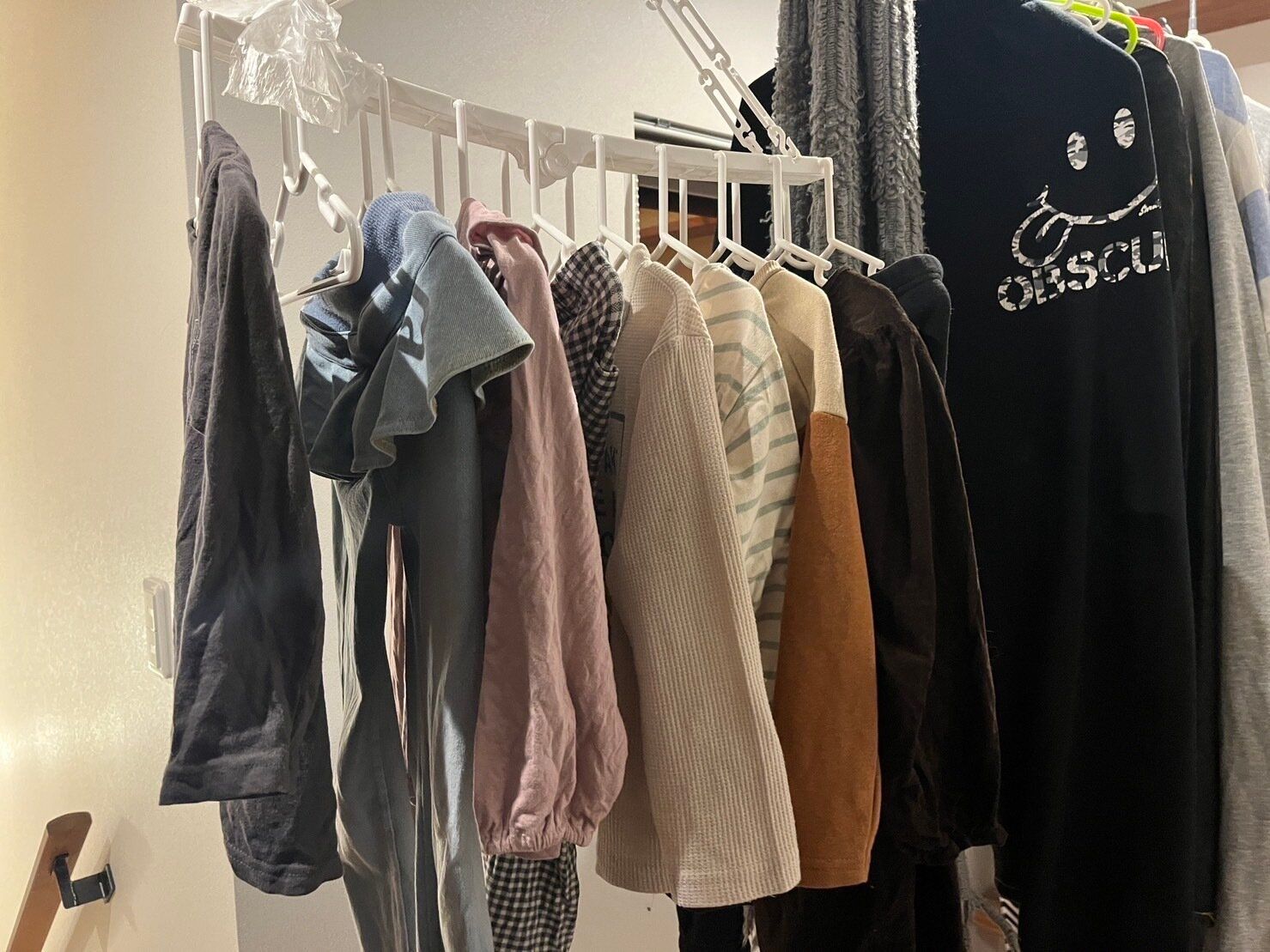 わが家は洗濯機がある脱衣所と2階の廊下に物干しがあります。(冬は乾燥対策で寝室にも干します)