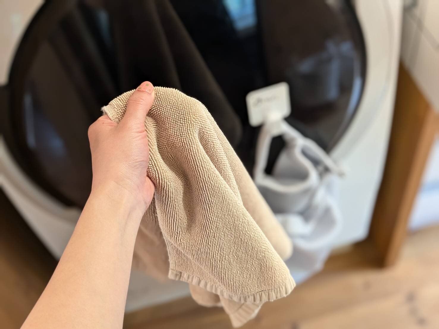 業務用ということで、メーカー側が「ガシガシ乾燥機を使ってください」というほどに丈夫な作り。実際筆者も毎日乾燥機に入れていますが、なかなかほつれることはありません。毎日使うタオルと同じように、最後に使った人が洗濯機に入れることでメンテナンスを苦に感じることなし!