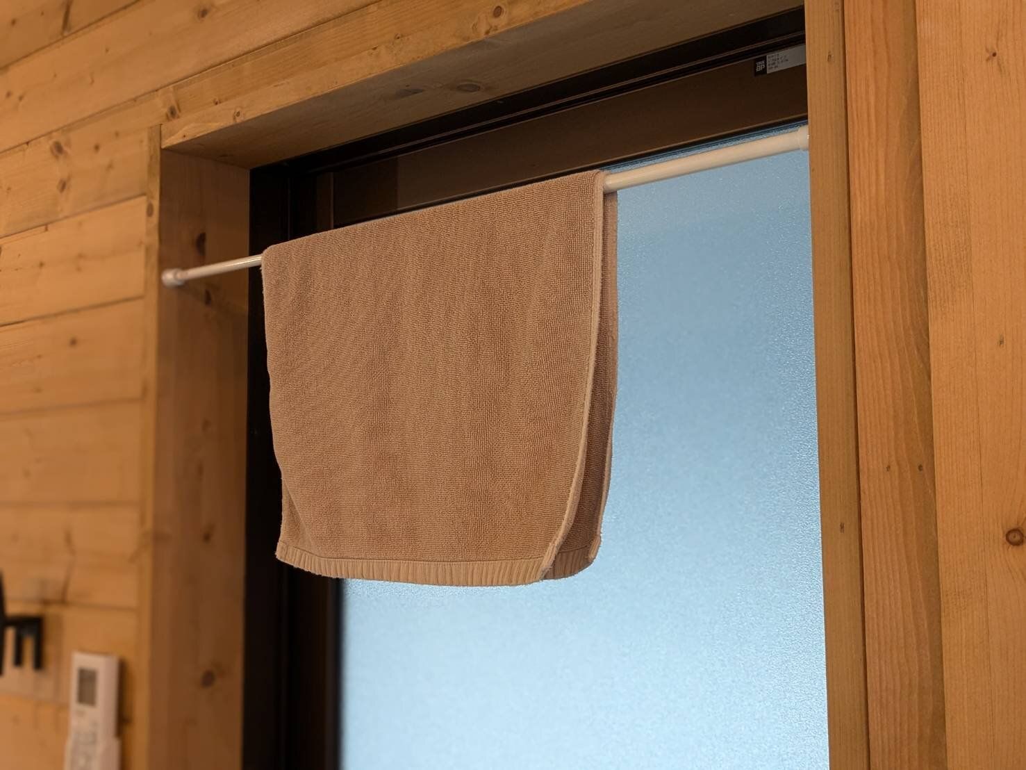 収納として使えるのはもちろん、乾燥機を使わない派なら「つっぱり棒」をそのまま「物干し竿」として使うこともできます。また、家族でお風呂に入るタイミングがバラバラな場合、自分の番が終わったら一旦かけておくことで、風通しよく保管することもできますよ。