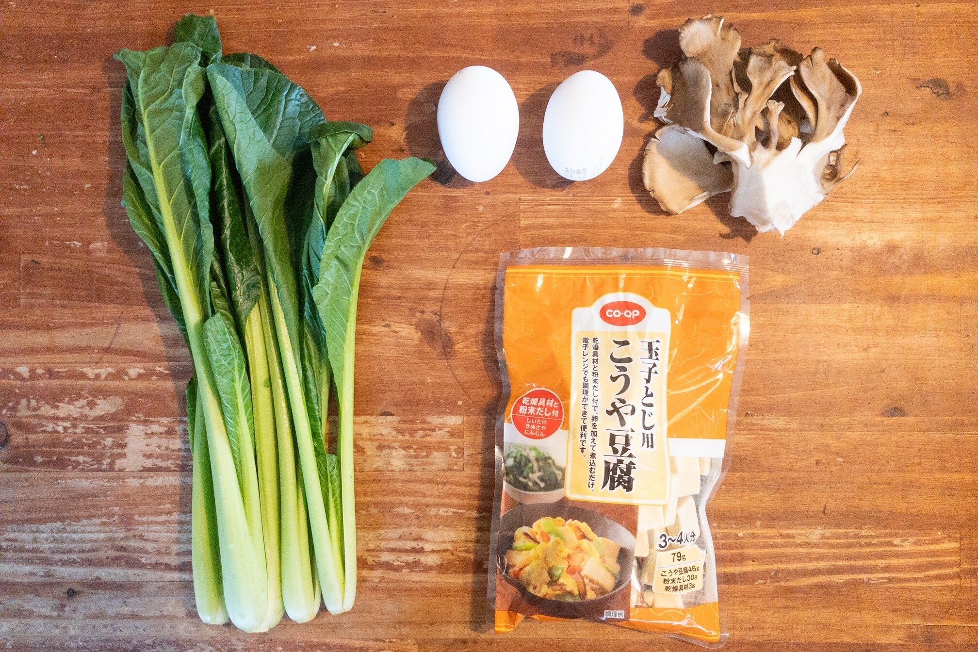 コープのオリジナル商品「玉子とじ用こうや豆腐 3~4人分」79g(製造者は㈱みすずコーポレーション)
