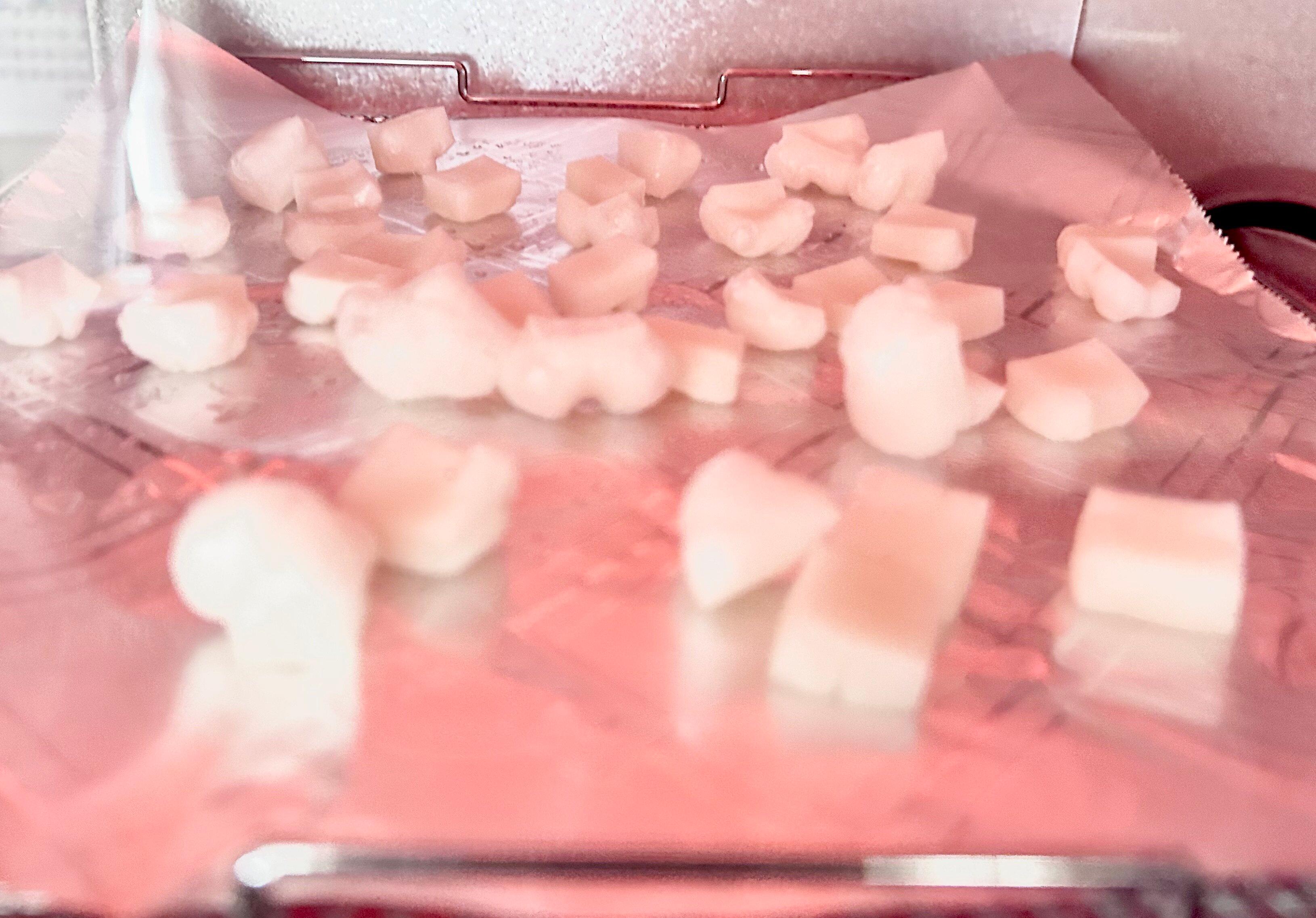 小指の爪くらい小さなサイズで薄めにスライスしてアルミホイルにうっすら油を引いて焼くだけ。最後にお好みの味をつければ完成。シンプルに塩や砂糖でも十分美味しいですよ。もう少し手間をかけられるなら、お餅を小さく切った後に天日干しで乾燥させると本格的なおかきのようにカリッと美味しくなるようです。