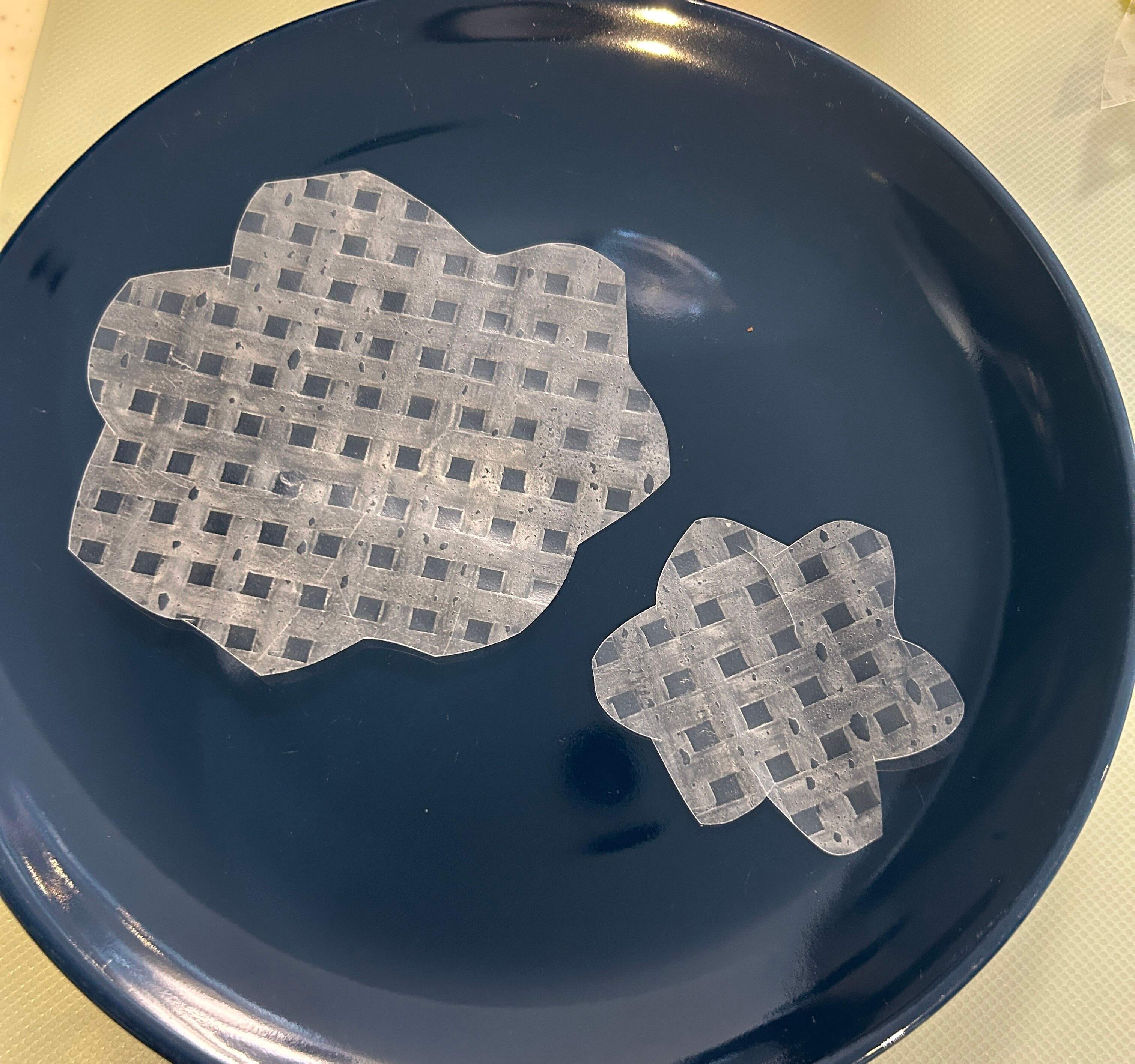1. ライスペーパーを大小2つのお花の形に切り抜きます。