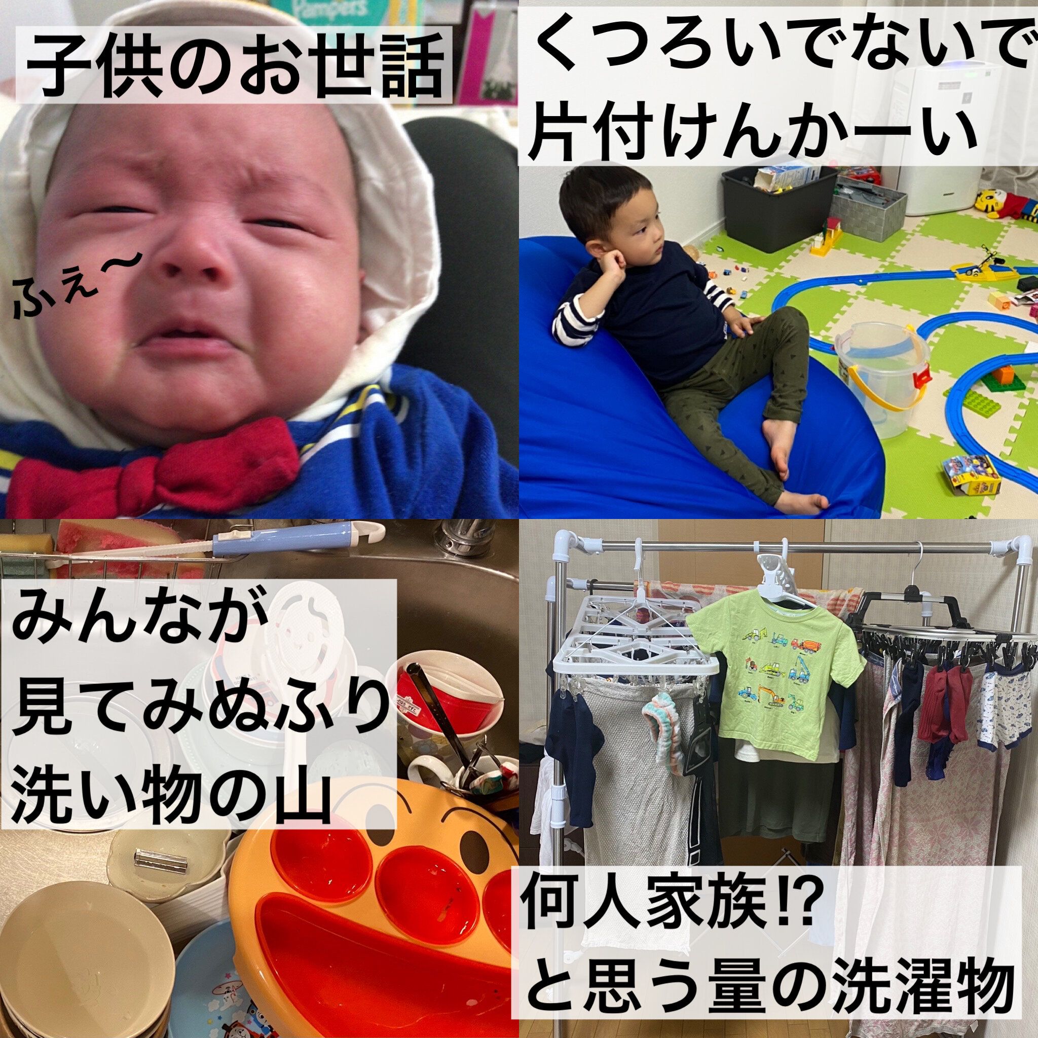 食べこぼし、おもらしでお色直しばかりの息子の洗濯物