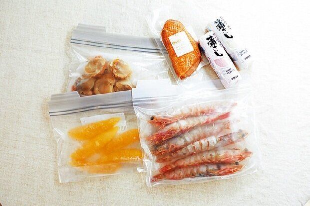 年末になると値上がりする傾向があるえびなどの食材は、安いときにまとめ買いしておき、冷