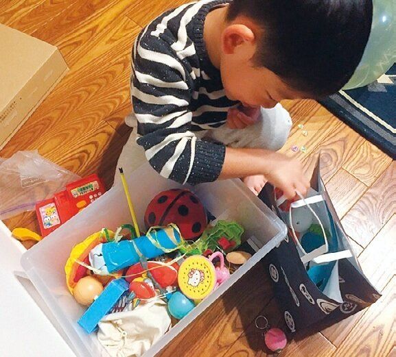 クリスマスに備えて、「サンタさんに返すおもちゃ」を選んで、片づける