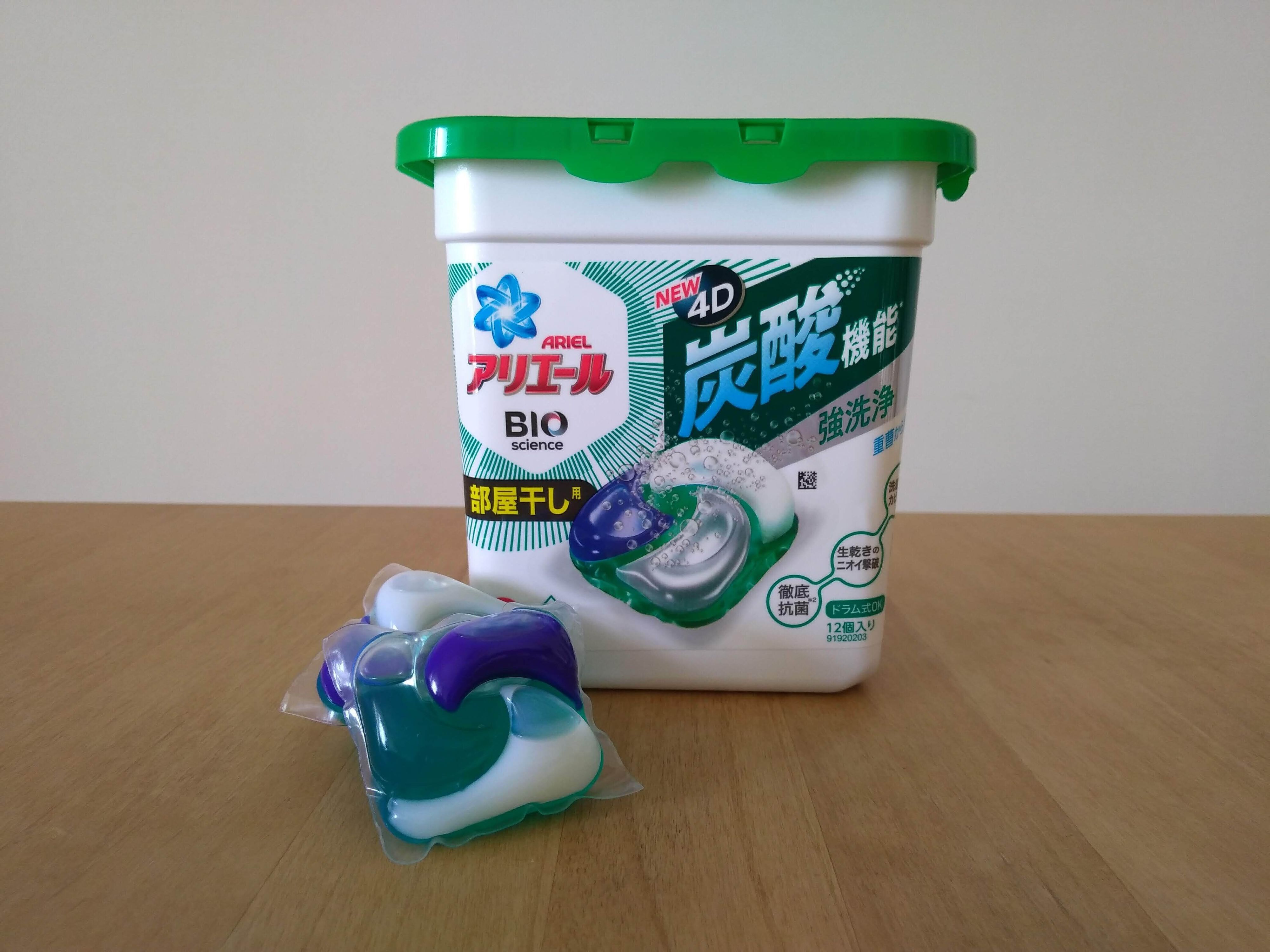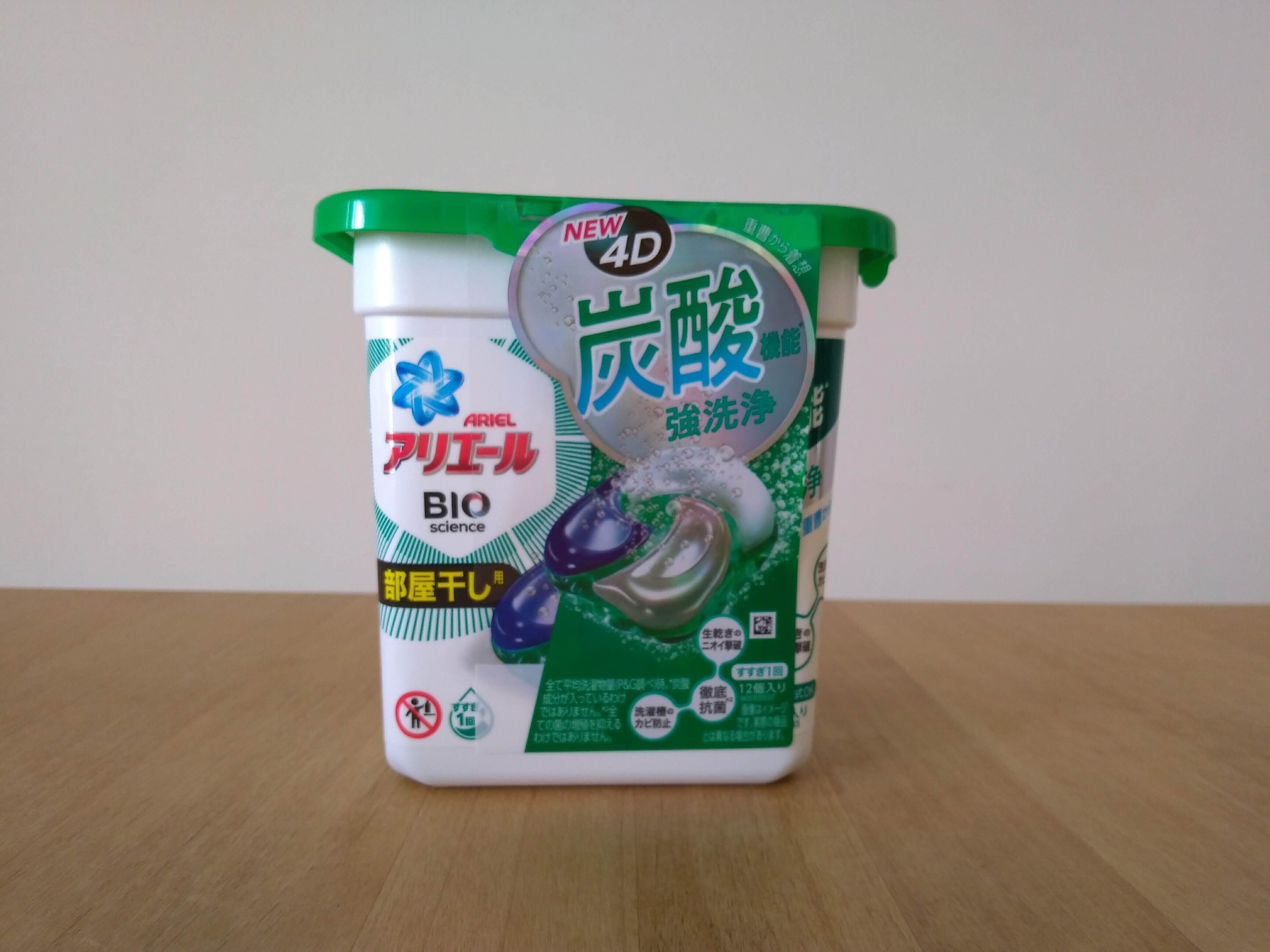 ちなみに今回使ったのは「アリエール ジェルボール4D 部屋干し用」。