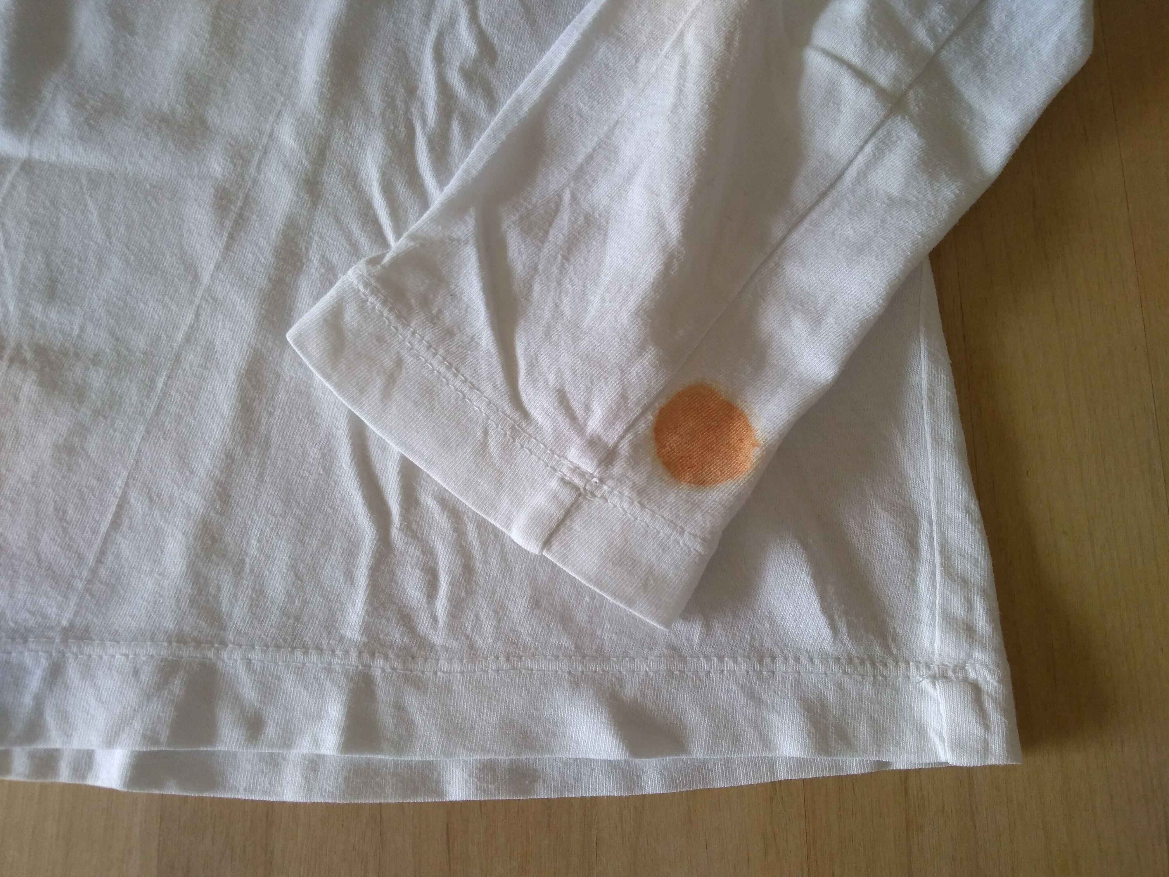 「洗濯しない日」の朝ついたケチャップ汚れ。そのまま放置して1日経った状態です。