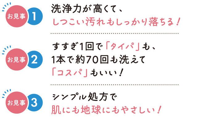 処方改良により皮脂汚れ・油汚れへの洗浄力の高さはそのままに、既存のユーザーから要望の多かった食品汚れにも強くなりました!