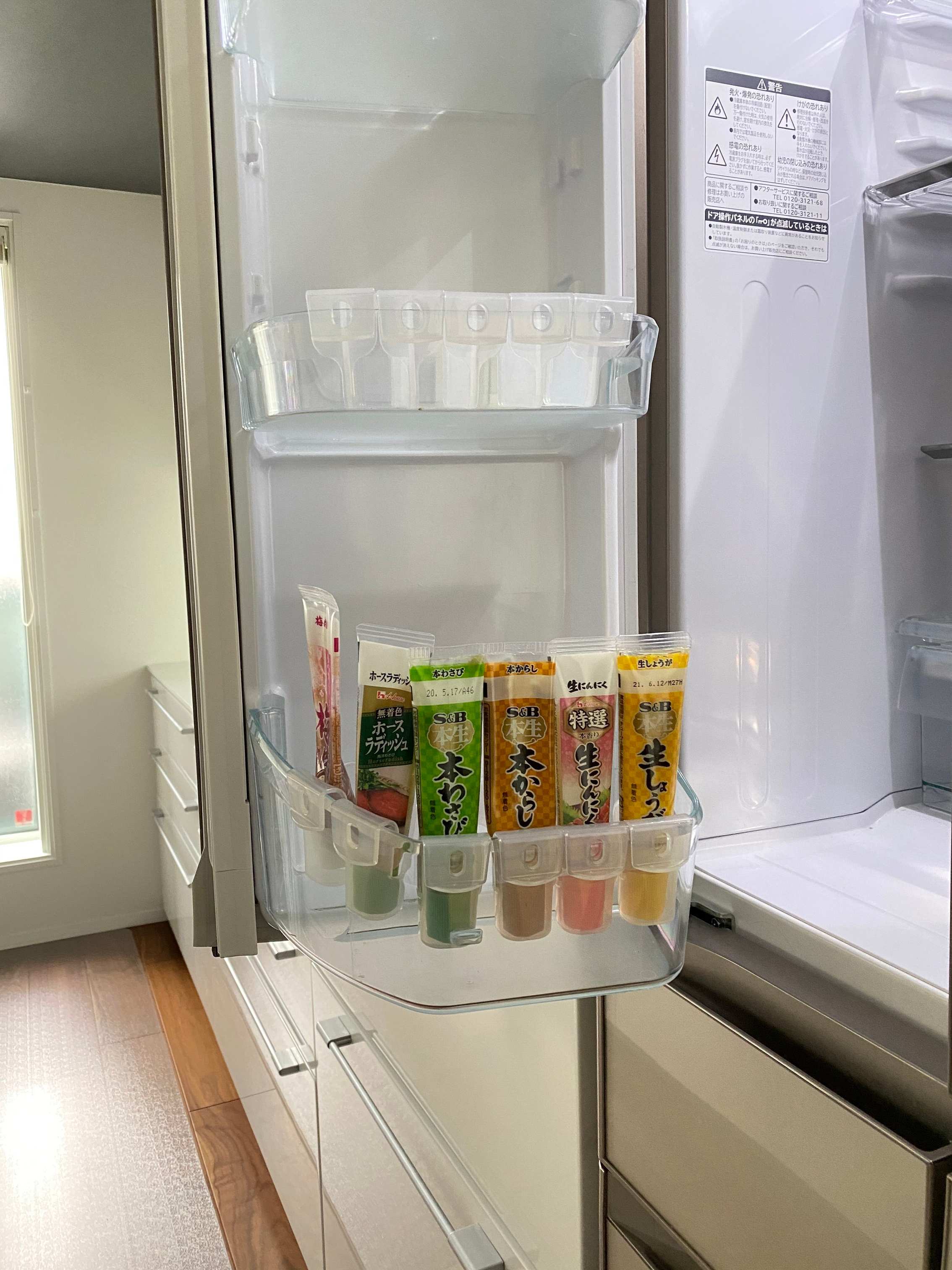薬味の収納に便利な「薬味チューブホルダー」。こちらの商品、ドアポケットに挟むだけで薬味が立てて収納できる優れもの!ただちょっとだけ工夫をすることで、さらに使い勝手が良くなるんです!