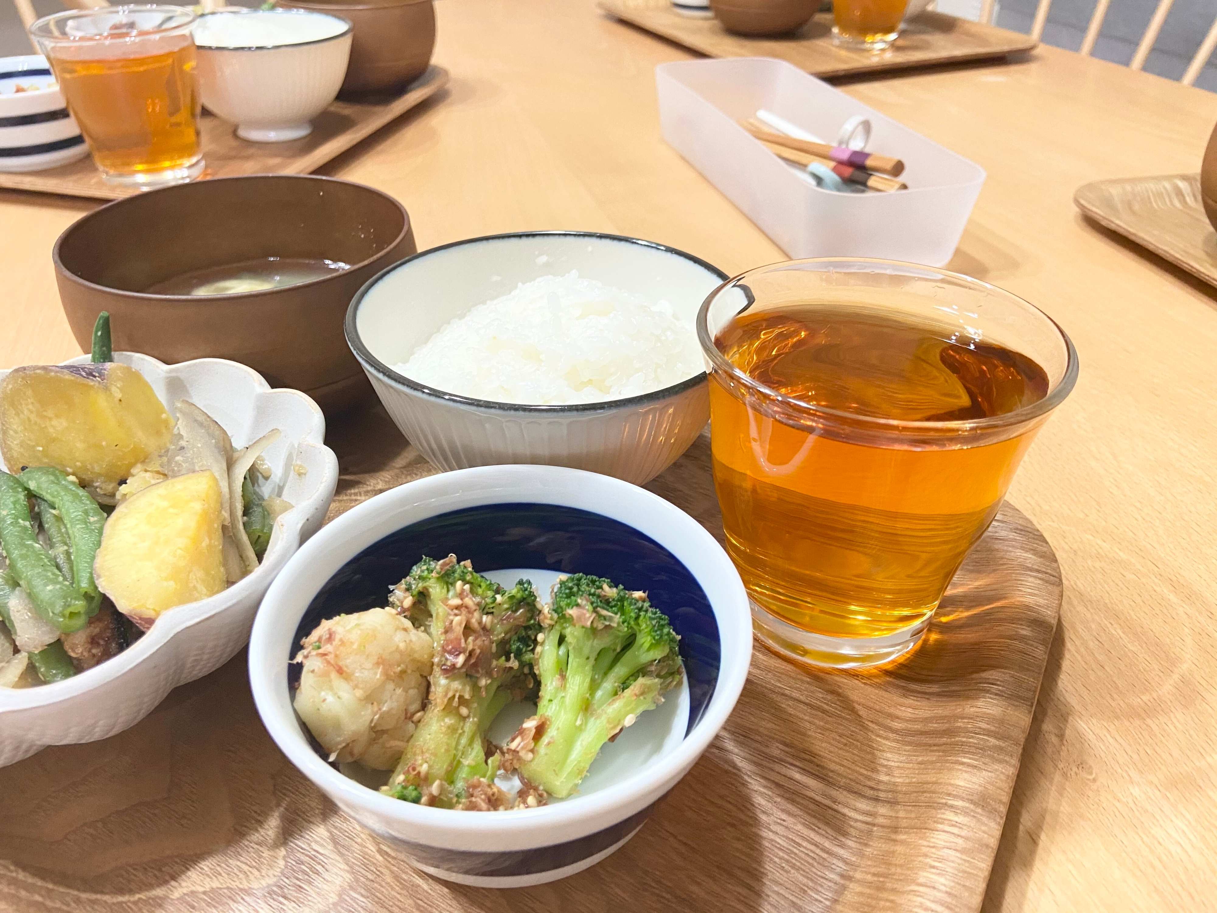 食事を食べて一度椅子に座ってしまうと、体は休憩モードに入ってしまい、大物の片付けは面倒になってしまいますよね。仕事から帰宅後料理中はトップギアで作業をしているので、動きも最速。そのため極力料理中または食事をする前に片付けを進めることにしています。