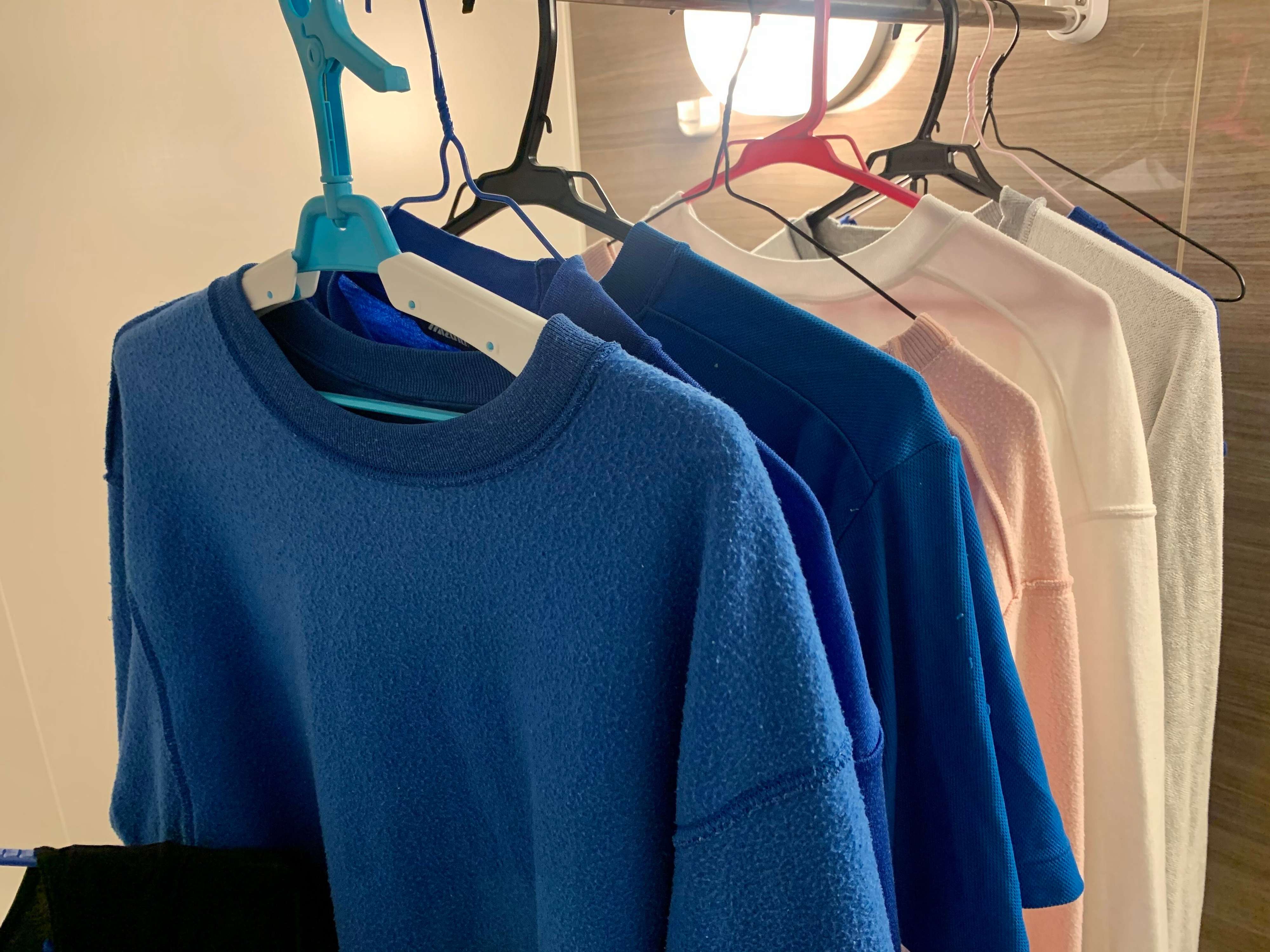 乾燥できないもの、シワになりやすい素材のものがあったり、量が多いと乾ききらないという弱点もあるので、少量を、素材を分けて洗濯乾燥するようにしています。