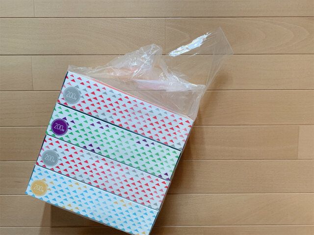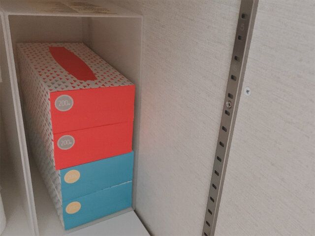 そこで、ティッシュペーパーは買ったらすぐ包装ビニールを剥いで納戸の取り出しやすいところにしまうことにしました。