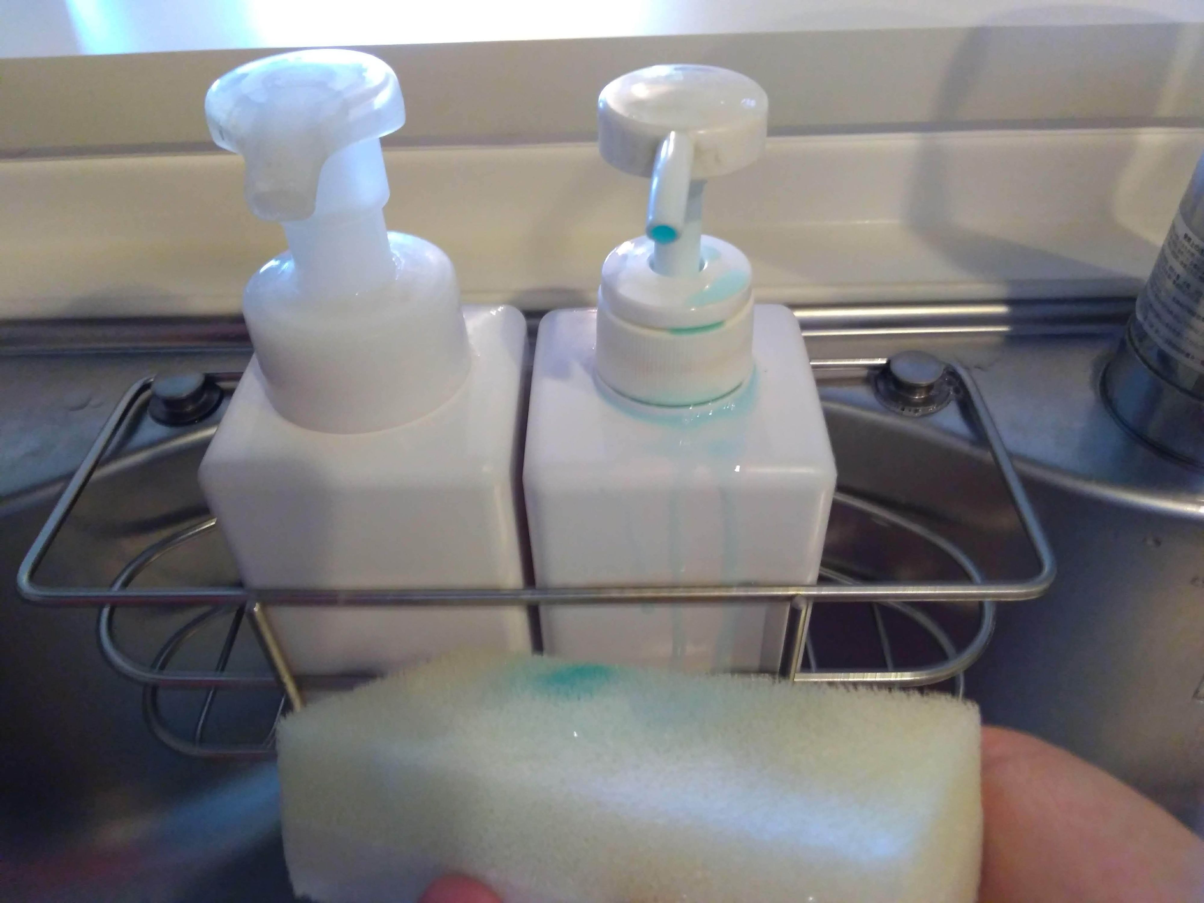 急いでいたり、バランスを崩すと、洗剤がスポンジに直撃せずにシンクやボトルに垂れてしまうことが!
