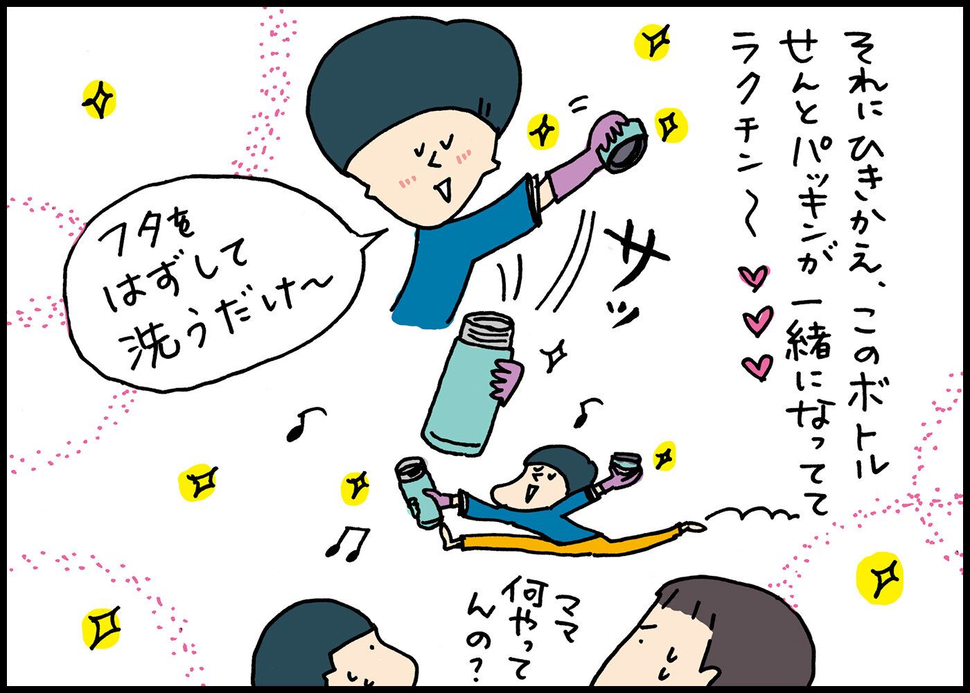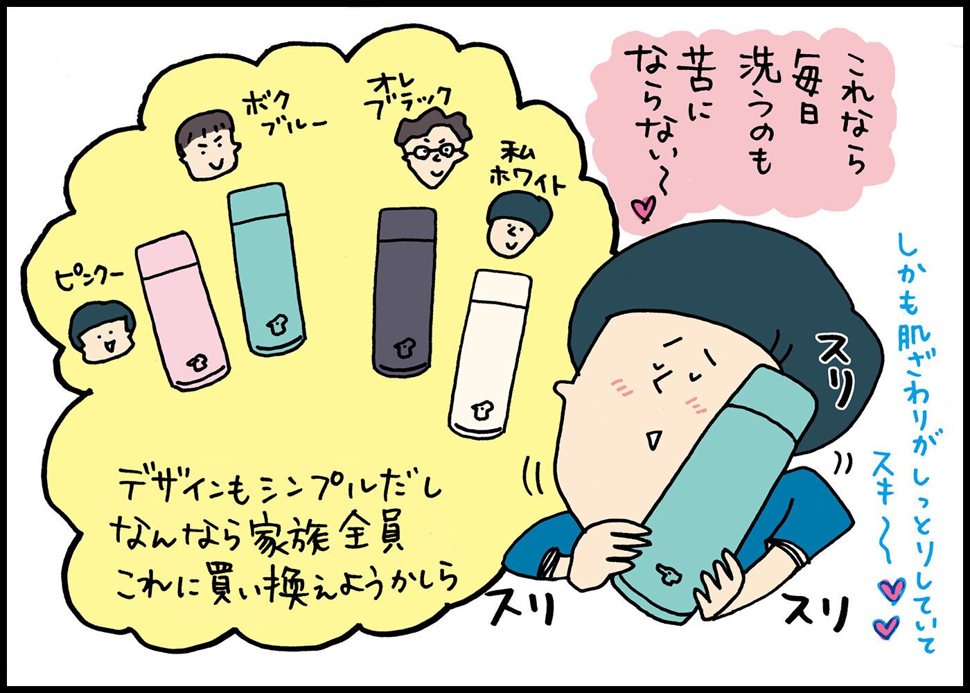 家族分のマイボトルがあるものの、やはり悩みは、パッキン。象印の「シームレスせん」搭載のマイボトルを試して、パーツが少なくて洗いやすいのと、配色のバリエーションにすっかり魅せられたようです。小学生のお子さんにも大好評!