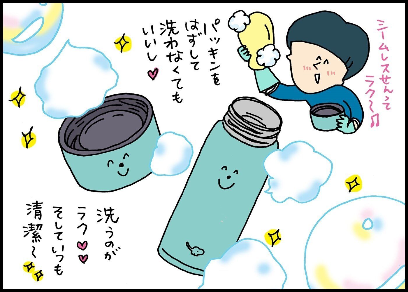 丸みをおびている飲み口は、口当たりと飲みやすさに定評あり。飲み口を洗うときも手にやさしくて、「シームレスせん」同様、洗いやすいから、時短にもなりそう。