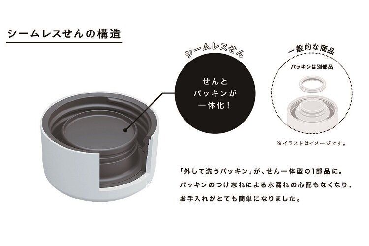 せんとパッキンがひとつになった、業界初※の「シームレスせん」は、パッキンを外す手間がない、つけ忘れの心配がない、なくさない、のないないづくし!