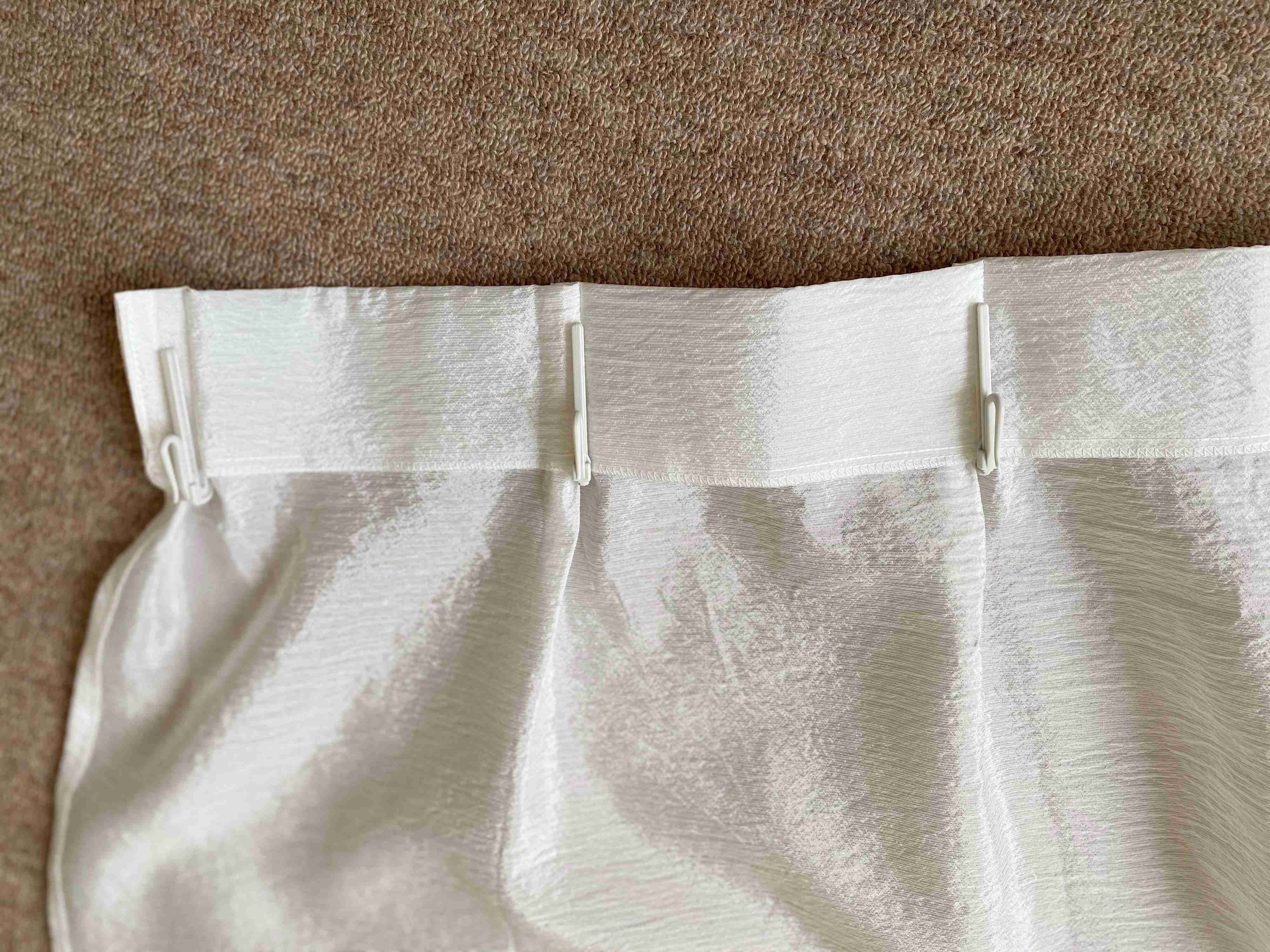 薄手のカーテンでフックが引っかかると困るので、内側に2回折りました。