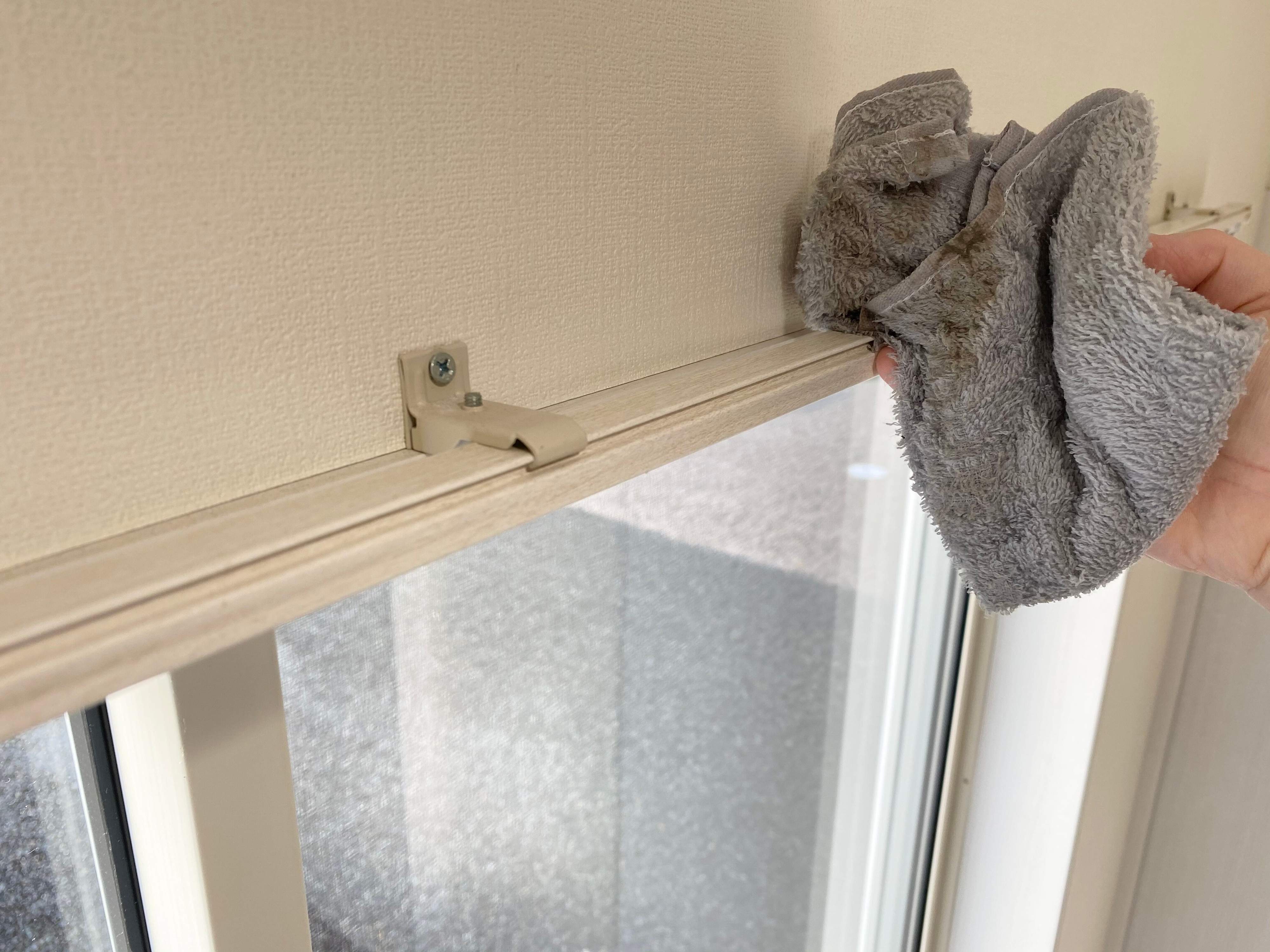 カーテンレールの拭き掃除もしておくと、気持ちよくカーテンを取りつけられますね。